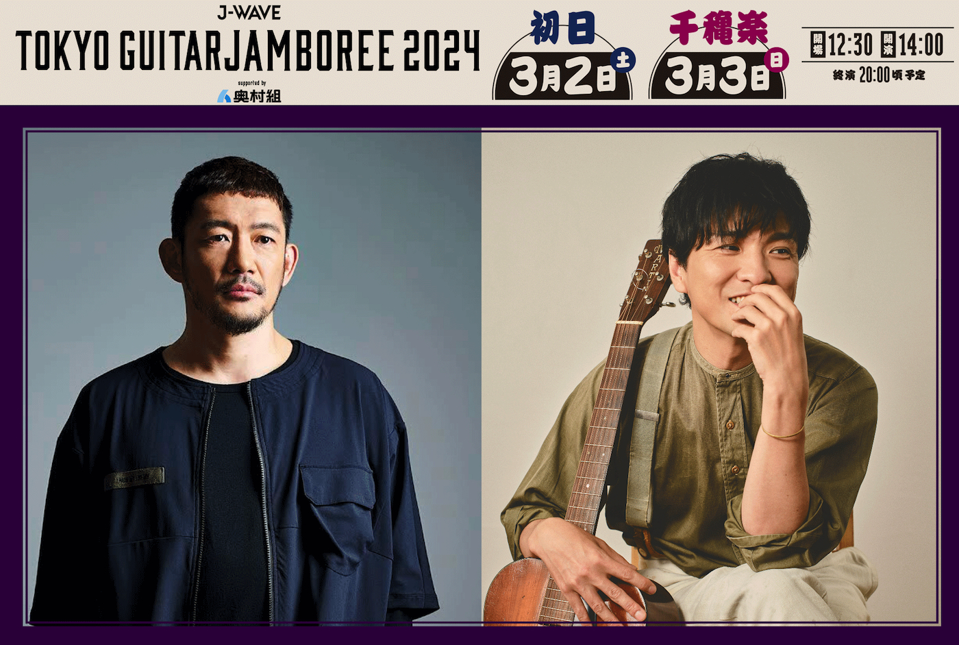 2024年3月2日(土)・3日(日)に両国国技館で開催される、様々なアーティストが共演する日本最大級のギター弾き語りフェス『J-WAVE TOKYO GUITAR JAMBOREE 2024 supported by 奥村組』(以下、ギタージャンボリー)の追加出演者が発表された。