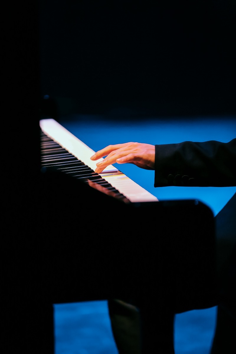 ホールは、演目によって舞台や客席配置を変えられるモジュール型。客席では老若男女が、青いスポットに照らされた2台のピアノ(スタインウェイのグランドとアップライト)を期待の眼差しで見つめていた。