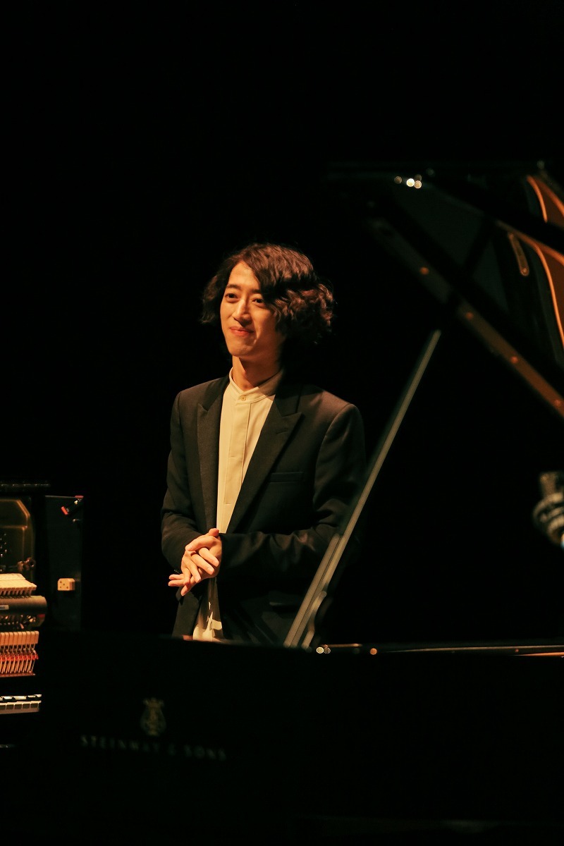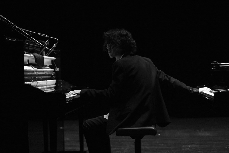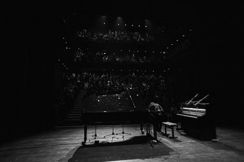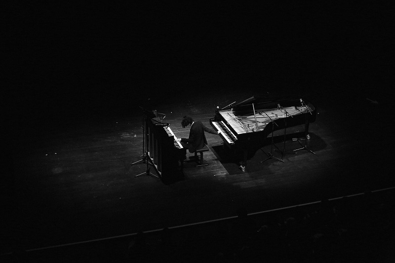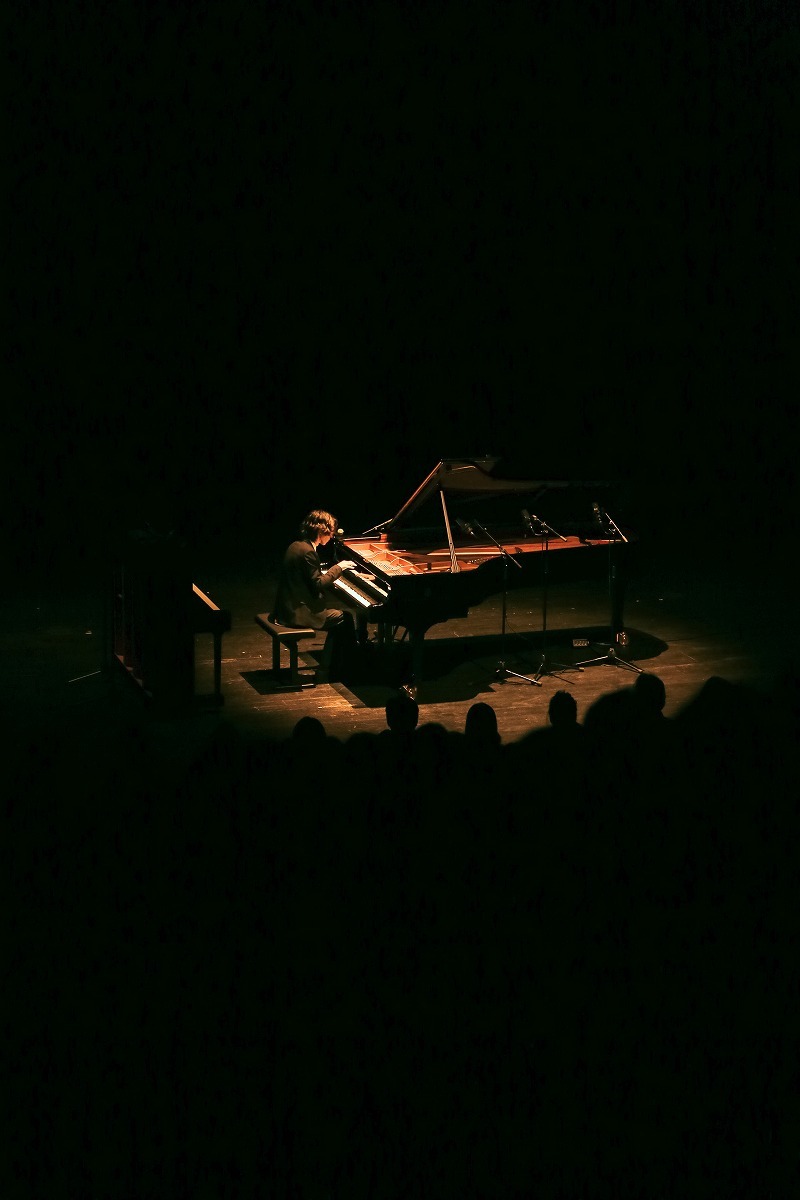 そして、プログラムは再びショパンへ。彼の2つの曲に基づいて角野が再作曲した、〈胎動〉と〈追憶〉だ。広い海原に漕ぎ出していくような〈胎動〉の高揚感は言わずともがな、今回はっとさせられたのが〈追憶〉に感じた変化だ。アップライトピアノのくぐもった音を、音響効果によってすぐそばで奏でられているように届け、聴衆を小さな自分だけの部屋に引き込む〈追憶〉。やさしく内省的で、せつないほどの安堵に包まれるこの曲に、この夜初めて「僕はここにいる」という強さを感じたのだ。