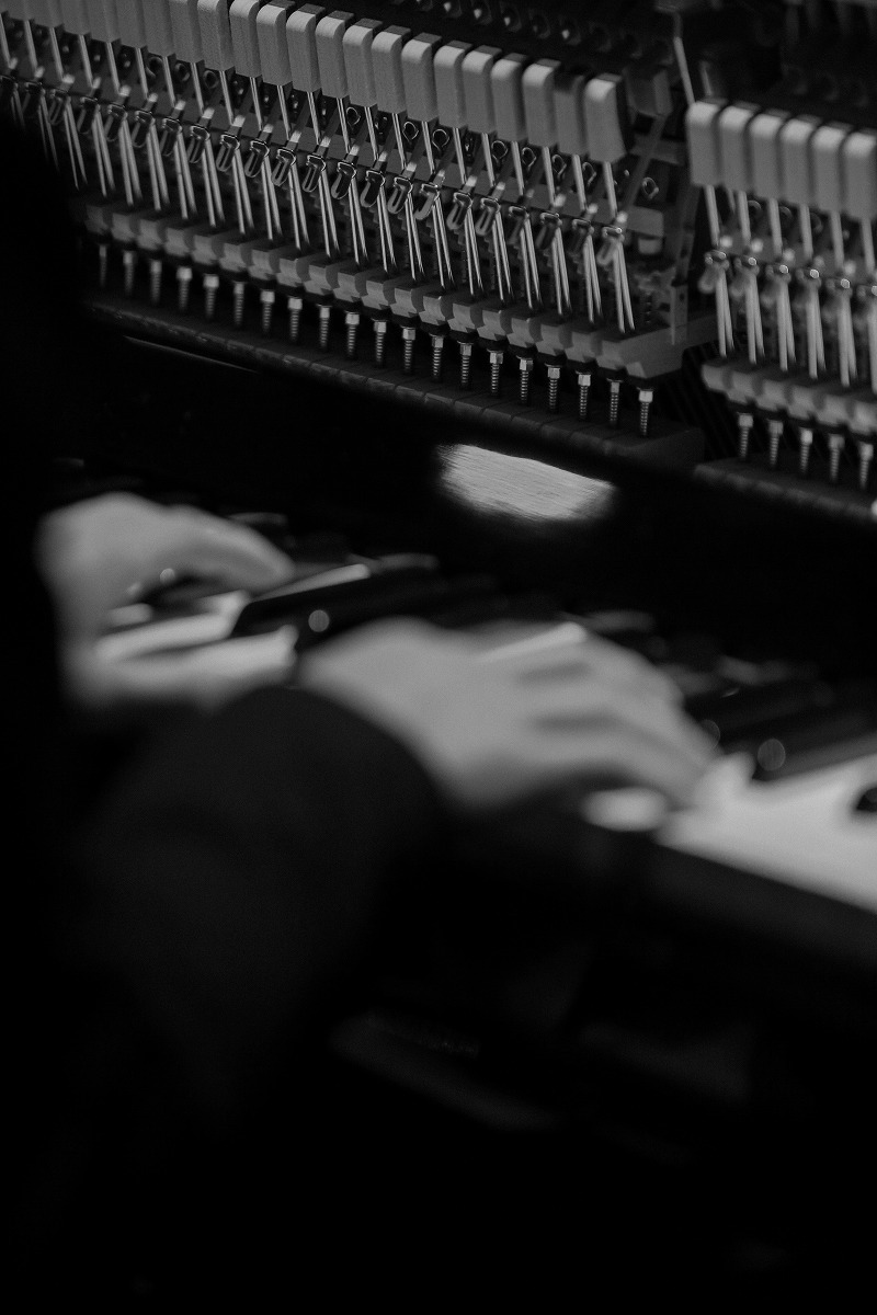 〈追憶〉を弾き終えた角野は、そのままじつに何気なく、なじみのあるメロディを奏ではじめた。一周目が終わり、背後のグランドピアノに右手を伸ばした彼が、2台のピアノで同じメロディが繰り返すと、会場の緊張が一気に高まる。独特のリズムにのせたメロディを、さまざまな楽器とオーケストレーションで繰り返す大曲――ラヴェルの〈ボレロ〉を2台のピアノで再現するという、前代未聞の試みだ。