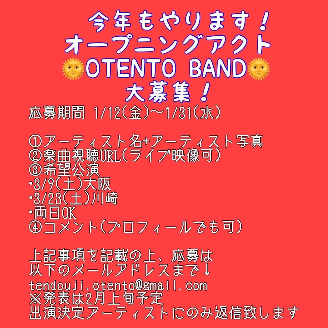 また、オープニングアクト“OTENTOバンド”の募集もスタート。ミュージシャンであれば形態問わず誰でもエントリー可能とのこと。