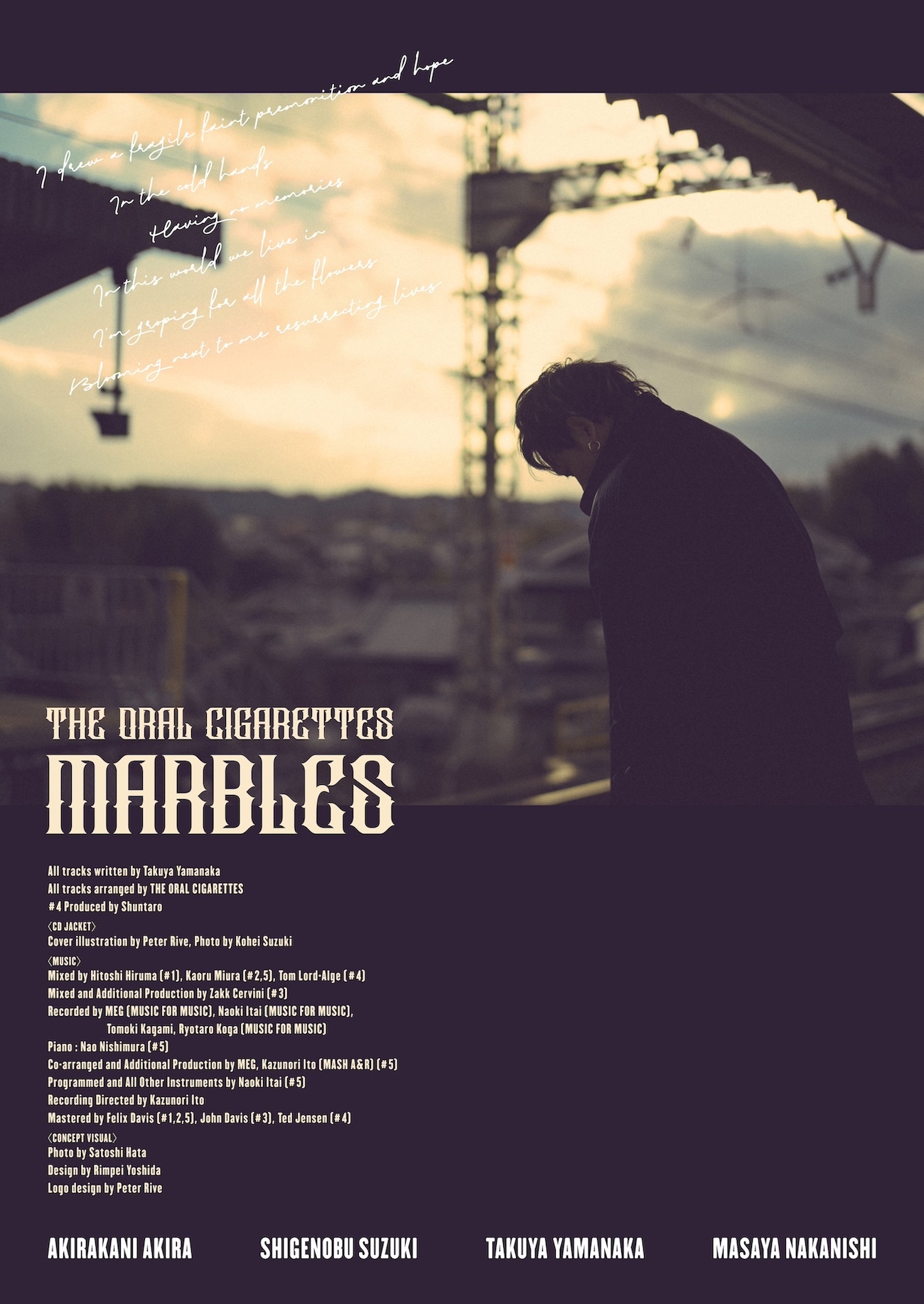 昨年10月にオーラル初のドラマタイアップ「YELLOW」を配信後、約半年ぶりのリリースになる。タイトルの『MARBLES』は、「Marble」=「ビー玉」「Lose my marbles」=気がおかしくなるという意味があり、様々な色が閉じ込められているビー玉をコロナ禍の状態に重ね合わせたタイトル。なお、本商品は、THE ORAL CIGARETTES OFFICIAL WEB SHOPでの限定盤となっている。