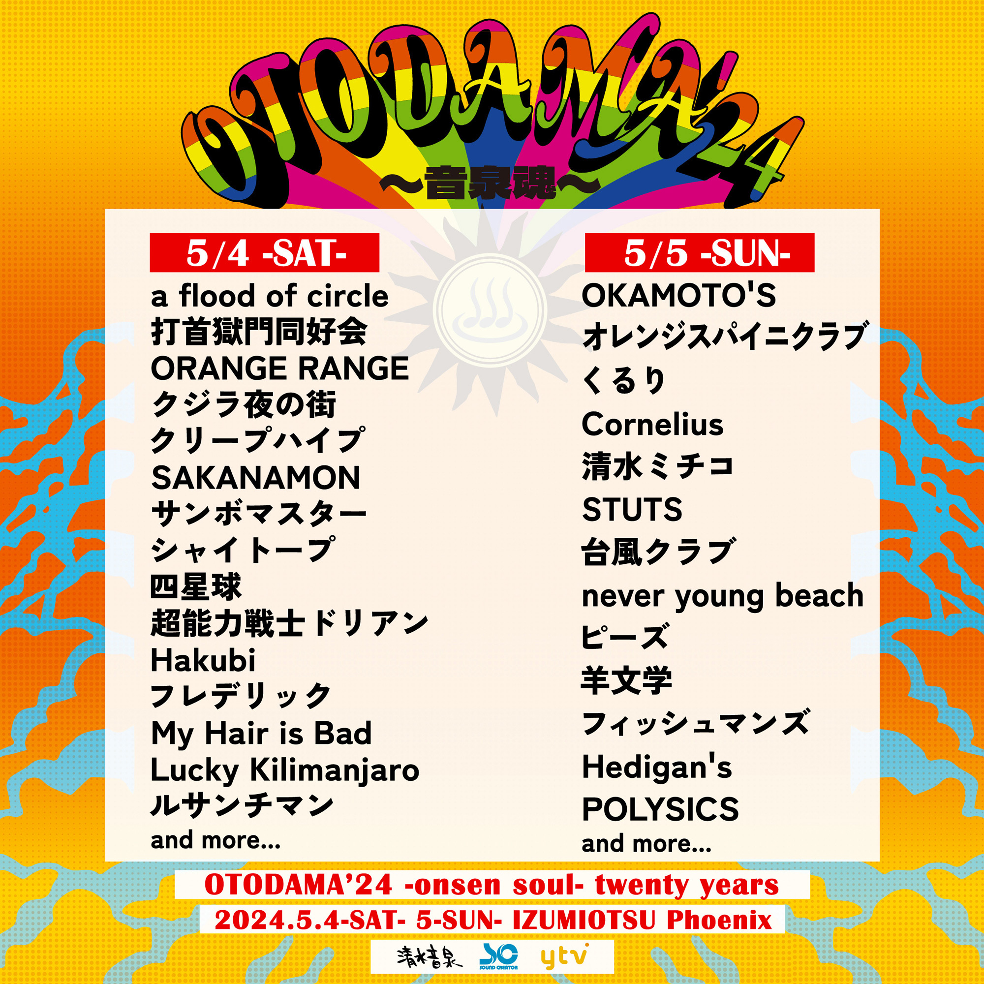 5月4日(土祝)5日(日祝)の2日間、大阪・泉大津フェニックスにて開催される『OTODAMA’24~音泉魂~』の出演者が発表された。