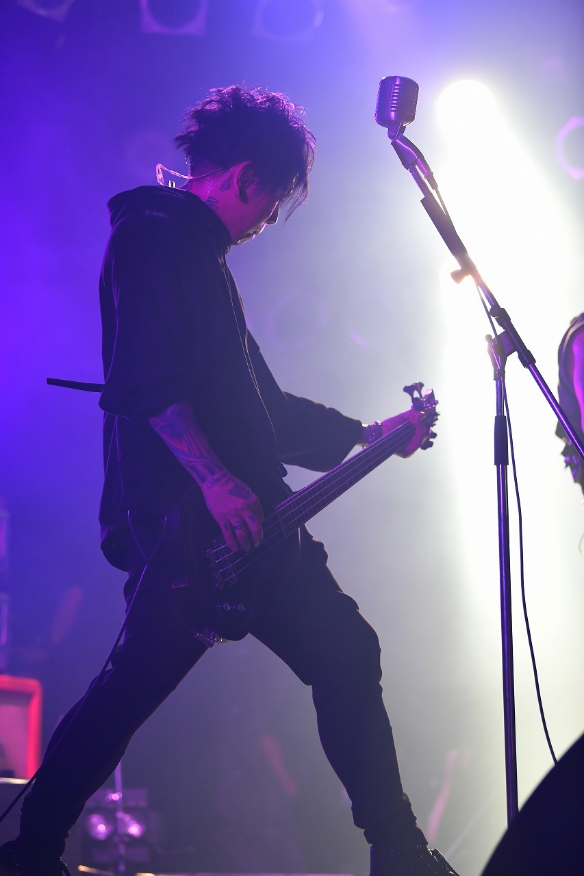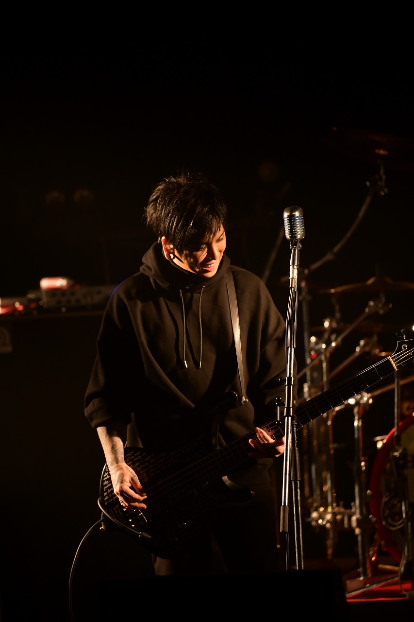 なお、8曲目のグランジロック感漂う「The Shadow」(松本和之)からはka-yuがベースを5弦から4弦のものに持ち替え、本編後半に向けてより機動力を重視した本格的臨戦態勢へとシフトチェンジ。