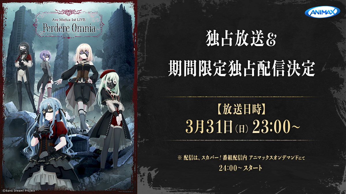 『Ave Mujica 1st LIVE「Perdere Omnia」』は、TVアニメ『BanG Dream! It’s MyGO!!!!!』最終話で登場したAve Mujica(佐々木李子、渡瀬結月、岡田夢以、米澤茜、高尾奏音)による単独ライブ。TVアニメ放映後では初の単独公演となった本公演は、会場チケットが早々に完売していた。