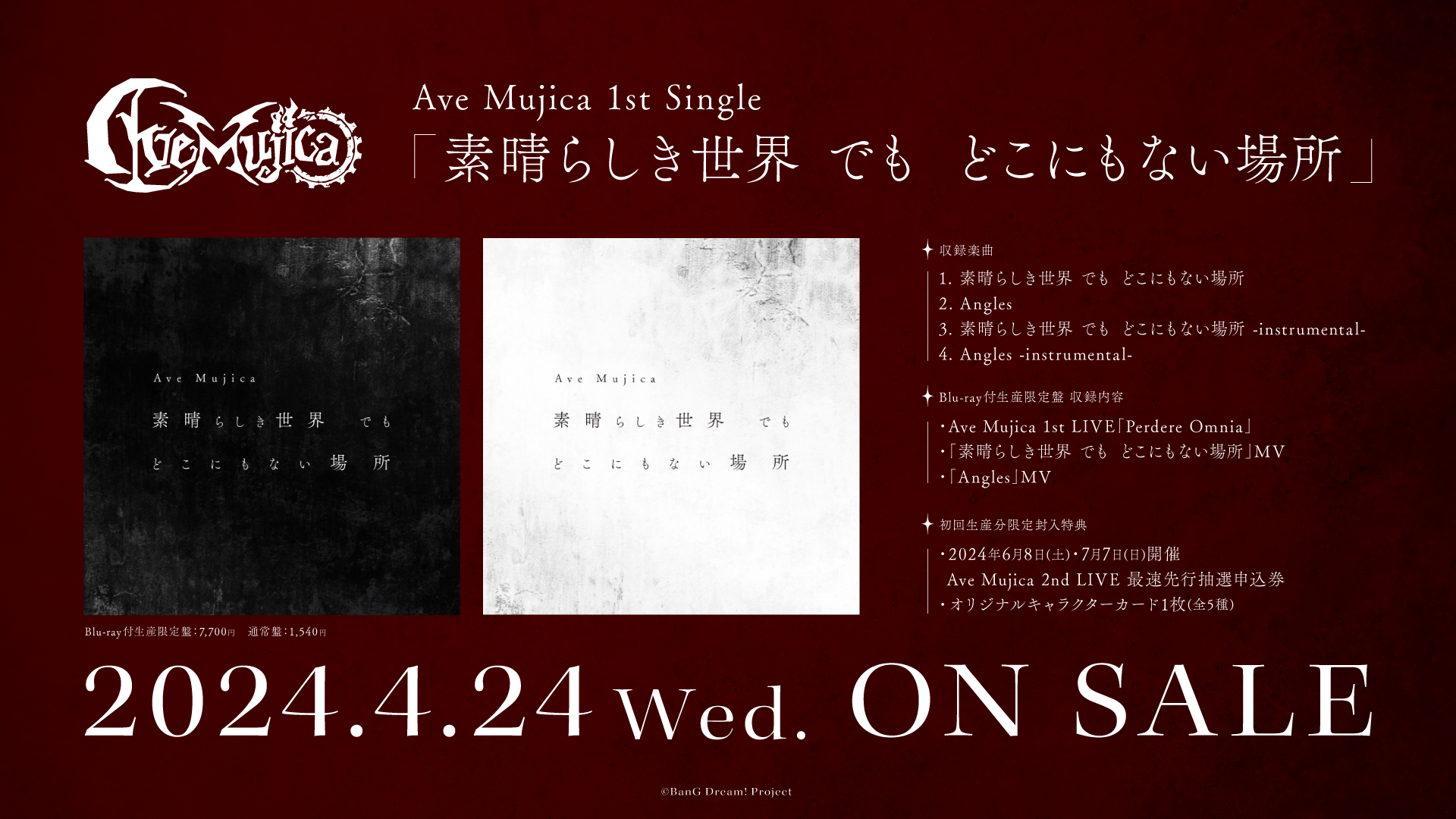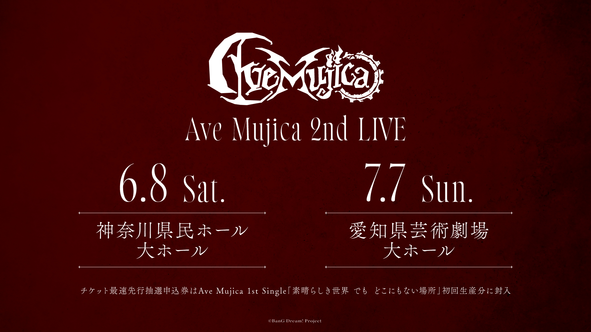 終演直後には、1stシングル「素晴らしき世界 でも どこにもない場所」が4月24日(水)にリリースされることも発表。さらに、『Ave Mujica 2nd LIVE』が6月8日(土)に神奈川・神奈川県民ホール 大ホール、7月7日(日)に愛知・愛知県芸術劇場 大ホールで開催されることも明かされた。