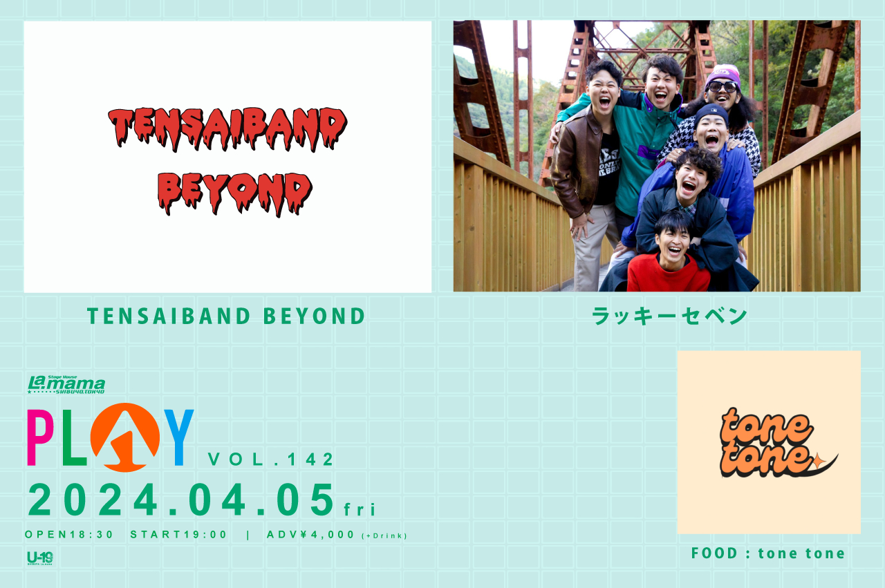 2024年4月5日(金)に渋谷La.mamaにて、TENSAIBAND BEYONDとラッキーセベンの2マンライブが行われることが分かった。これは渋谷La.mamaの名物企画『PLAY』にて2マンが実現したもの。