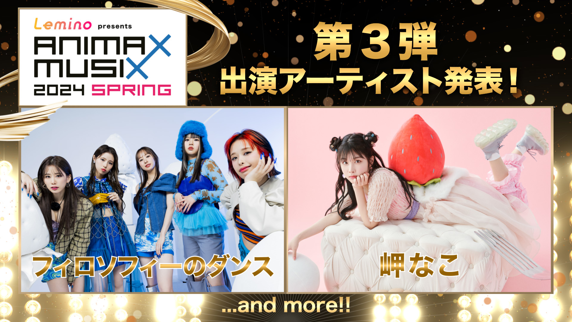 2024年3月30日(土)に開催する『Lemino presents ANIMAX MUSIX 2024 SPRING』の第3弾出演アーティストとして、フィロソフィーのダンス、岬なこの2組が発表された。