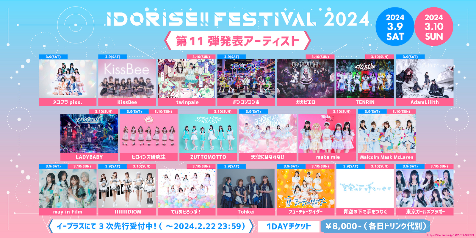 2024年3月9日(土)・10日(日)の2日間、東京・渋谷にて開催される『IDORISE!! FESTIVAL 2024』の第11弾出演アーティストが決定した。