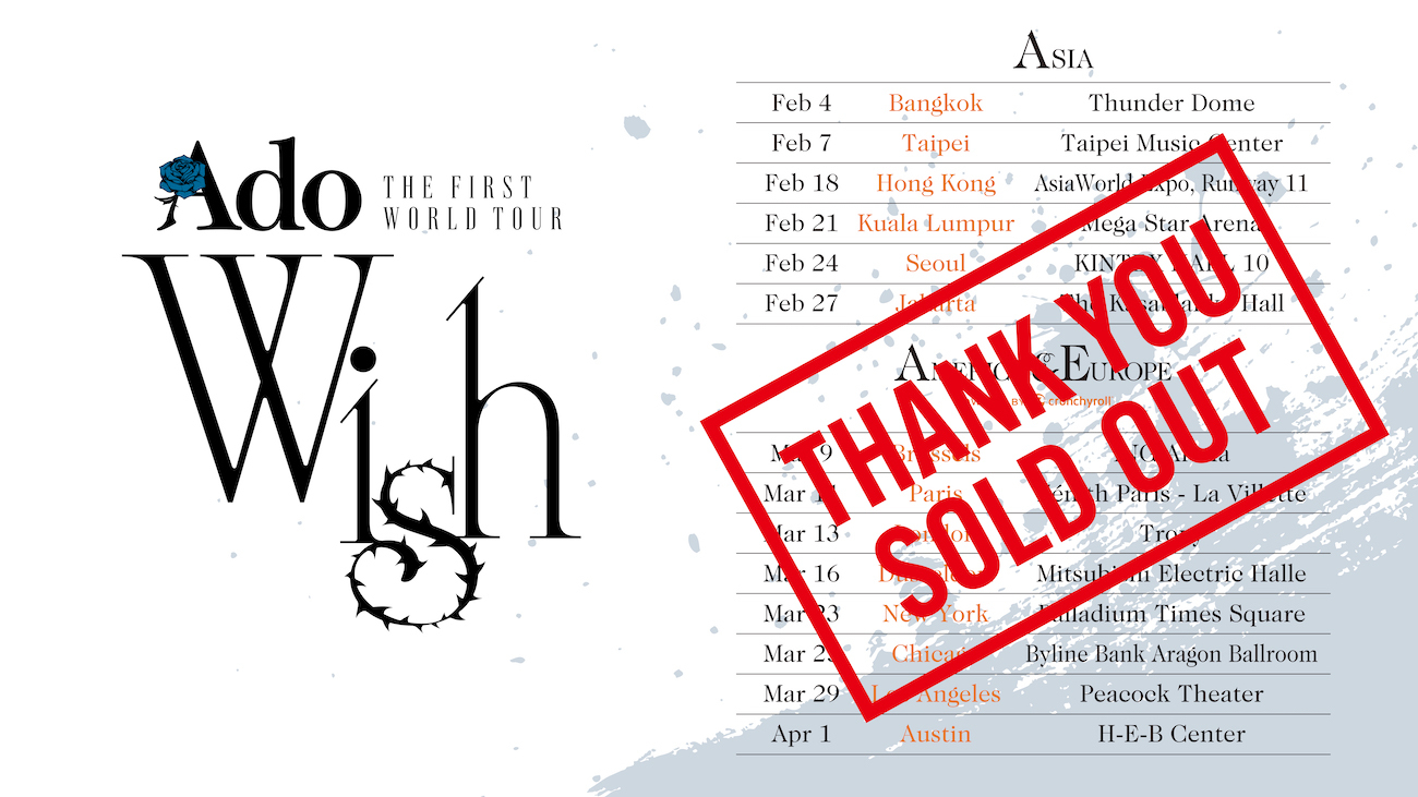 21歳の歌い手Adoの初となる世界ツアー『Wish』全公演のチケットが完売した。