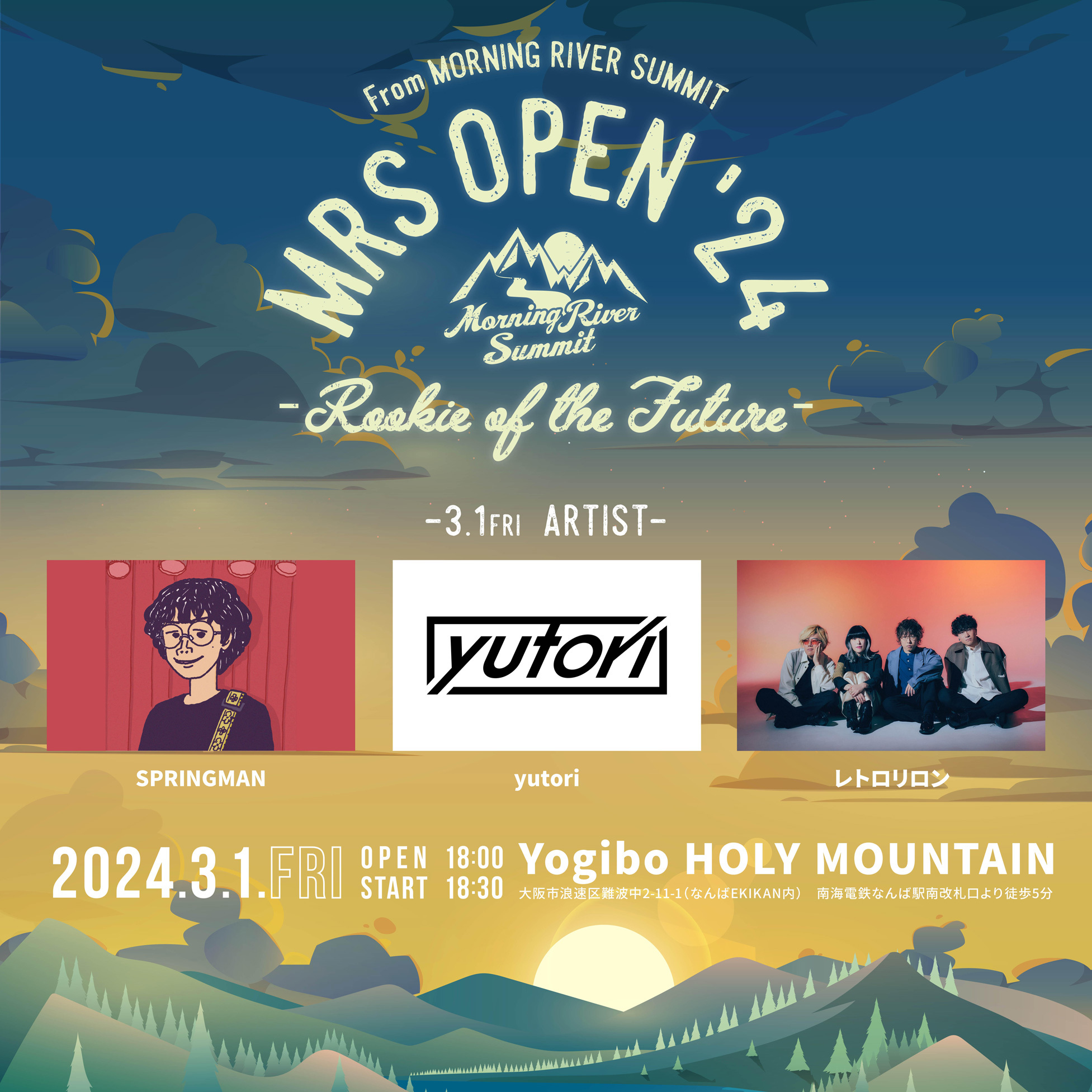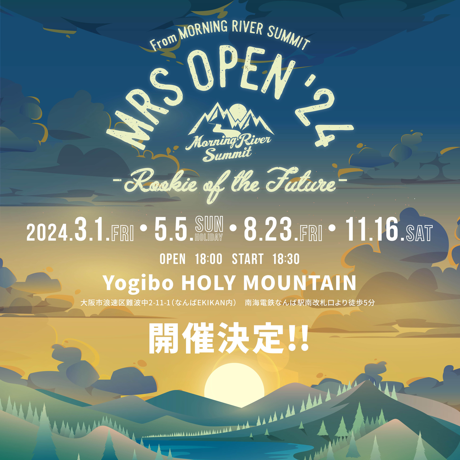 『MRS OPEN』は、「今のうちに観ておきたい」をテーマに、2008年から次世代を担うバンドを発掘するイベントとして開催されてきた『MORNING RIVER SUMMIT』がライブハウスで行うスピンオフイベント。今回は大阪・難波に新しく誕生したカルチャー・エンタメシンボル「Yogibo HOLY MOUNTAIN」にて、3月1日(金)、5月5日(日)、8月23日(金)、11月16日(土)の全4回にわたって開催される。