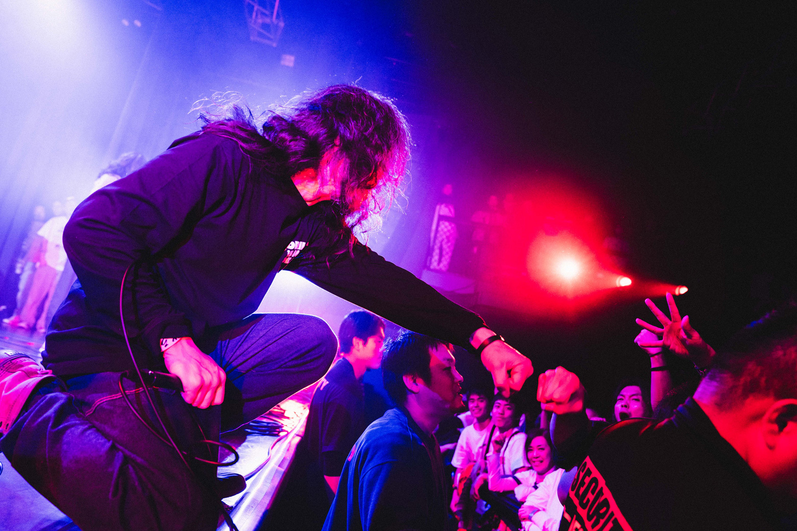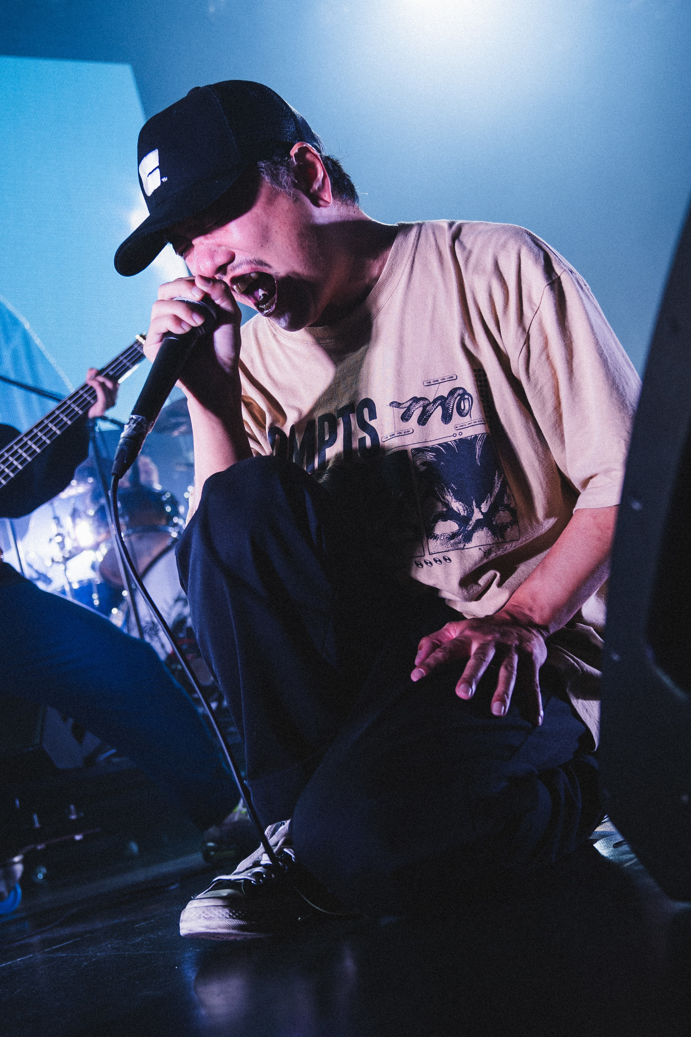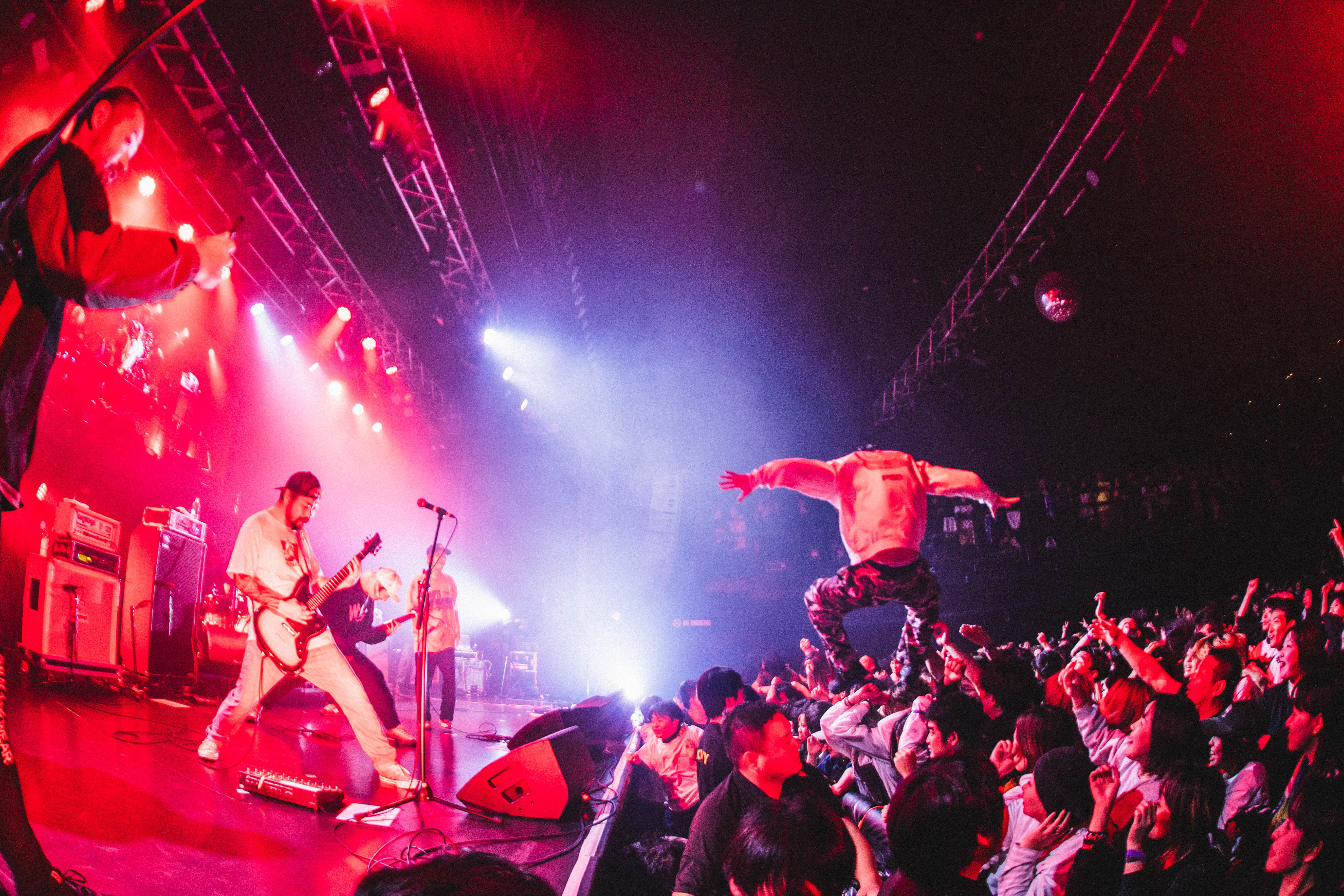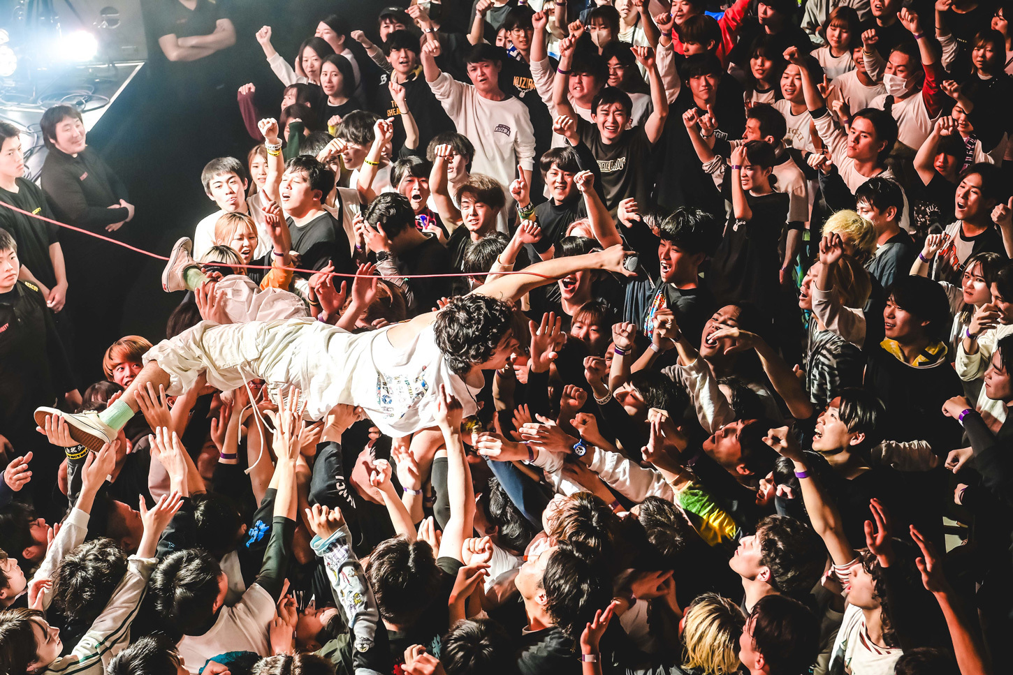 「かませ!」、シンプルな煽りのひと声でフロアに強烈なハーコーが発生。「Senses」「Overcome」、さらには「Tourette’s/NIRVANA」のカバーと、頭上から降り注ぐ轟音を浴びながら全身で音に塗れていく観客たち。「最高! みんな優勝!」、観客の豪快な暴れっぷりにメンバーも満足気だ。その後もダイバー量産型サウンドを投下し続け、出演者が次々に飛び入り参加してはフロアに飛び込んだりと、「大暴年会」の名にふさわしいステージに。「来年も大好きなバンドとライブハウスをよろしく!」と、グッドメロディを爆音で届け、颯爽とステージを後にした。