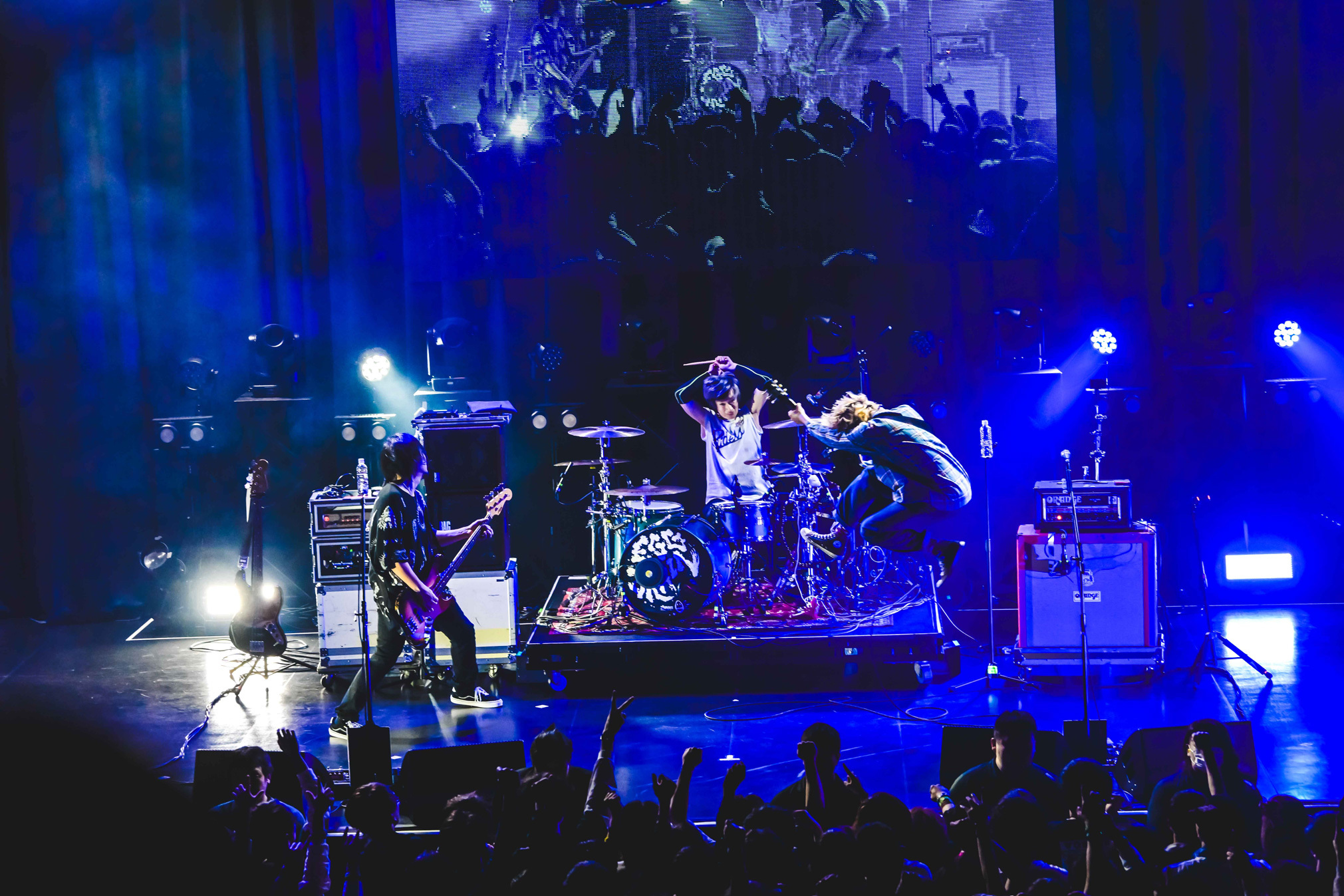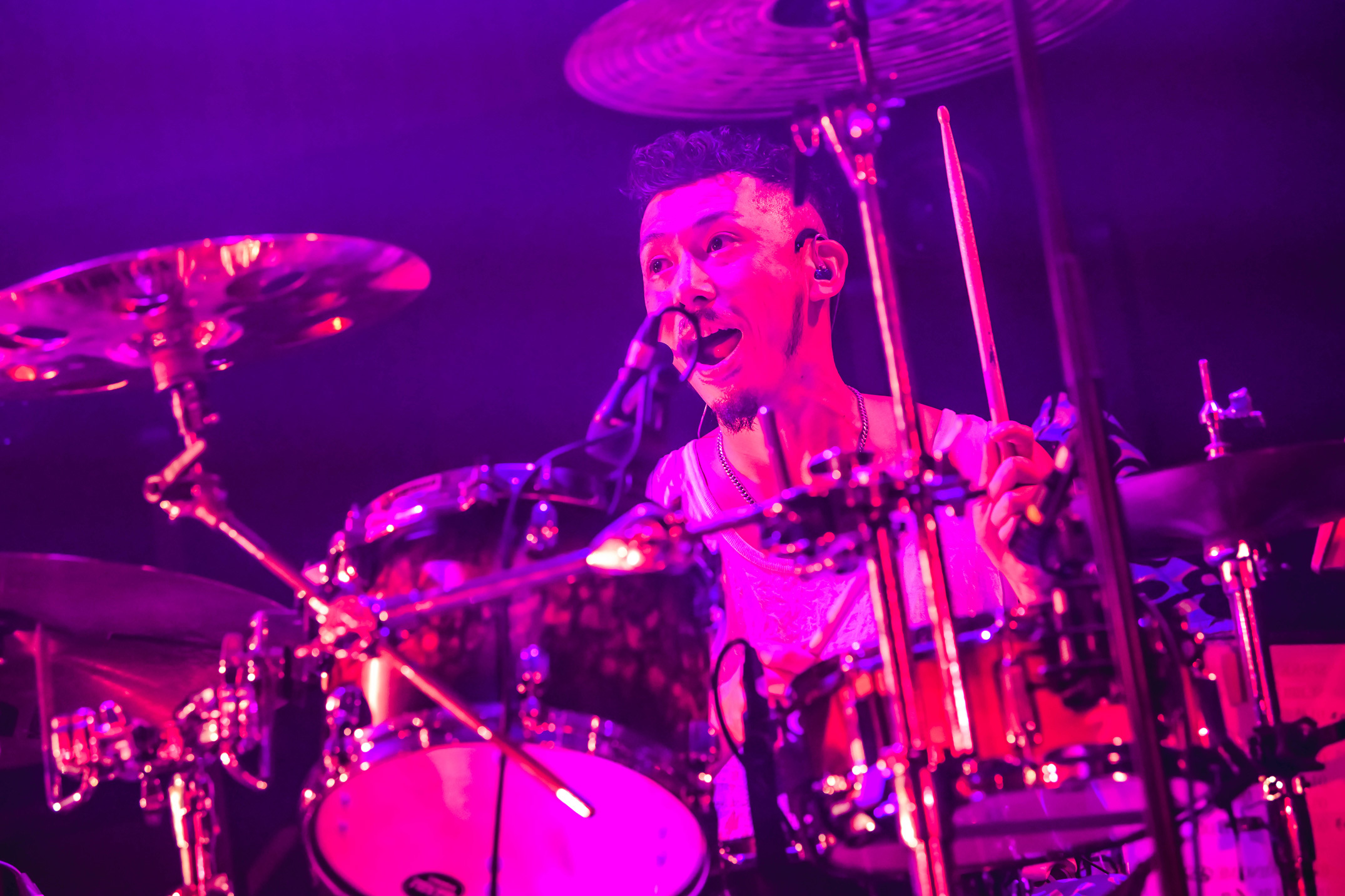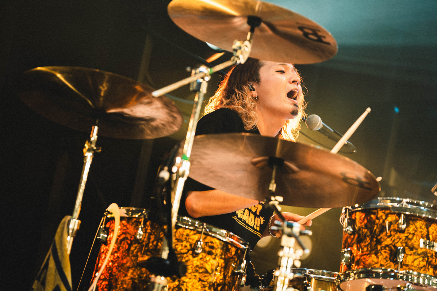 最新の音響システムを導入しているゴリラホールでは、轟音が鳴り響くと足元からビリビリと体が震えるのだが、SHADOWSのステージは最初から最後まで、観客全員に電動マッサージ機でもあててますか?ってくらいに、体がずっと揺れ続けていた。豪快なスタートダッシュをきった「All I Want」、Ryo(Dr)のビートが、Hayato(Ba)のリズムが身体に真正面からぶつかってくる。激動の渦に誘い込むように、Hiro(Vo)の高速ボーカルが一層加速していく。Kazuki(Gt.Vo)、Takahiro(Gt.Vo)、2人のシャウトが突き抜ける「So What」、荒ぶるHiroのハイな歌声とのギャップも爽快だ。