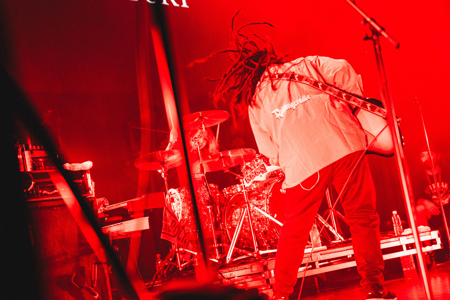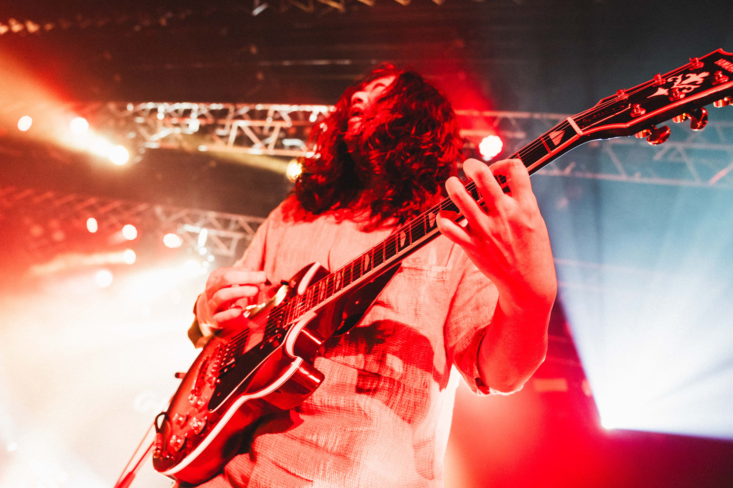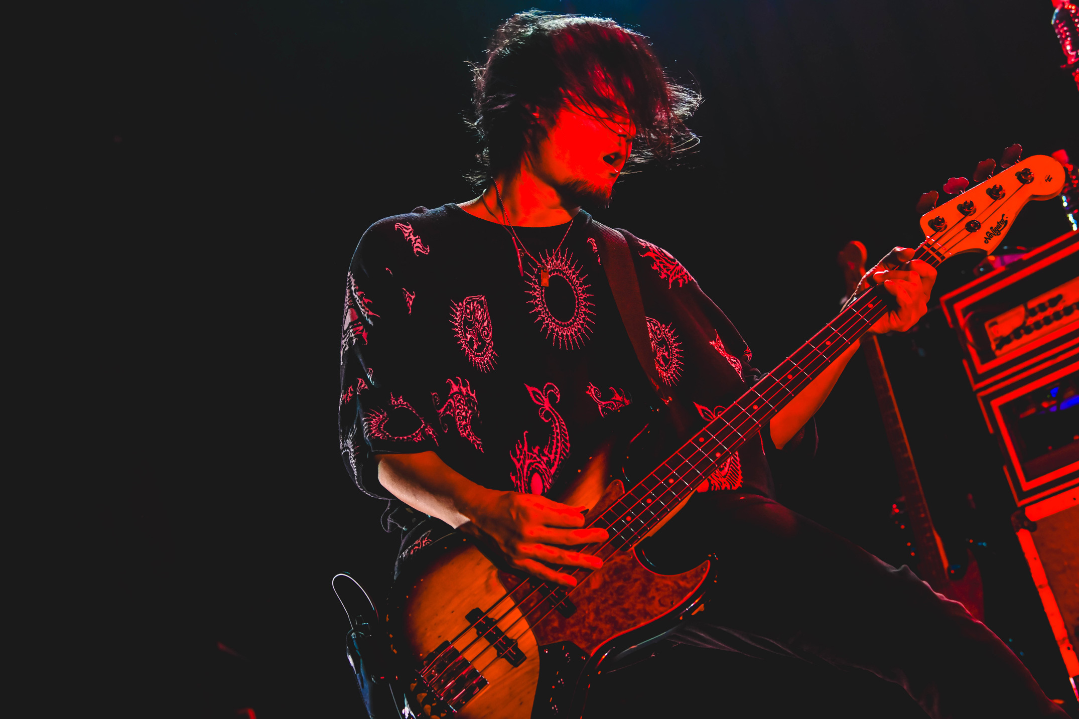 吉橋”yossy”伸之(Ba)リズムのなかを泳ぐように、次から次に前方へ飛び込んでいくダイバーと拳を交わす茂木。その拳を重ねるたび、彼の表情も一層ギラついていく。そのギラつきは「REAL SIGN」でさらに濃厚になっていく。土着的な三味線と鍵盤のサウンド、ループする読経のような歌唱、そして群馬讃歌的なリリック。岩本”leo”怜王(Dr)のビートも中毒性があって、聴くほどに脳髄の奥のほうまで引きずり込まれてしまう。