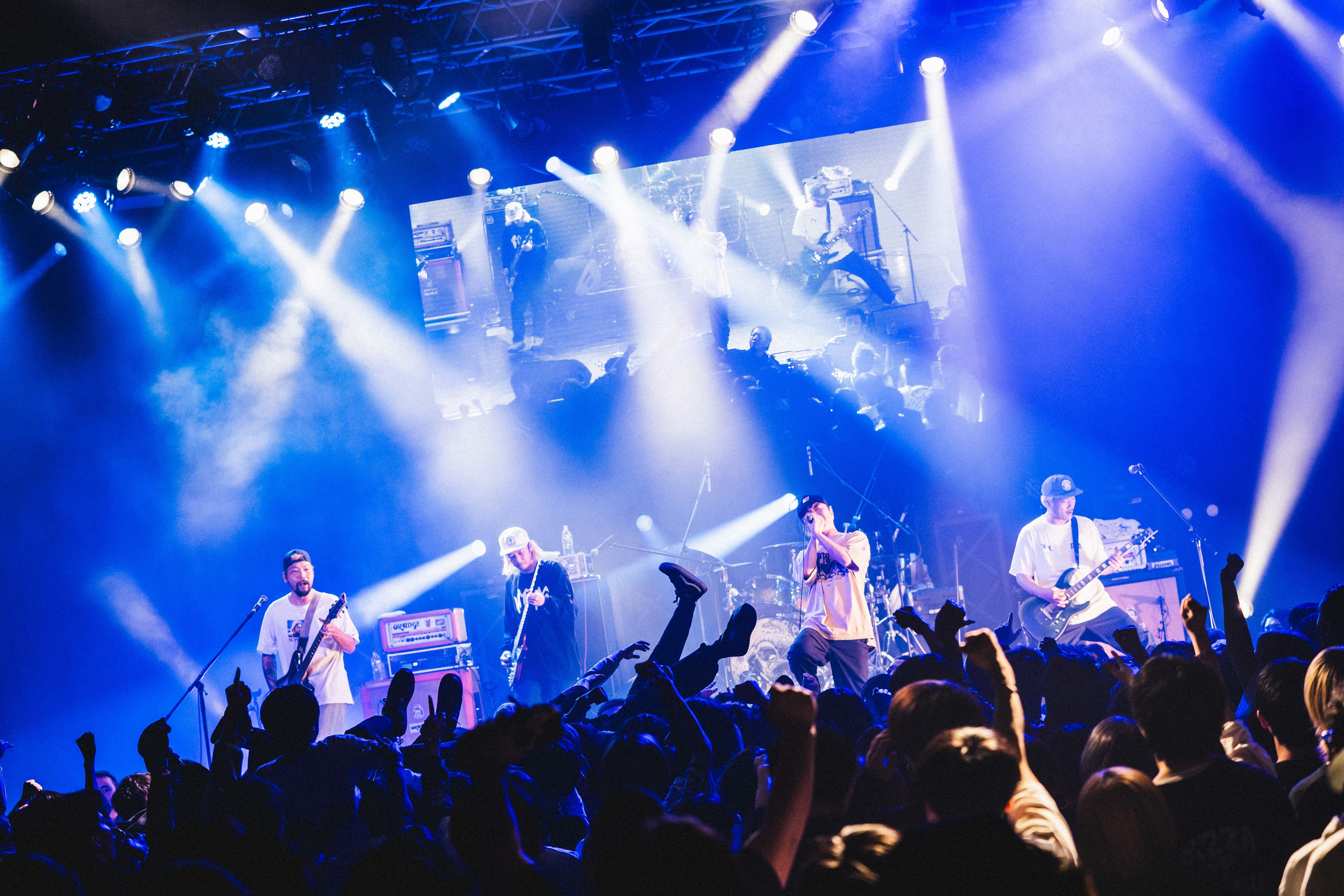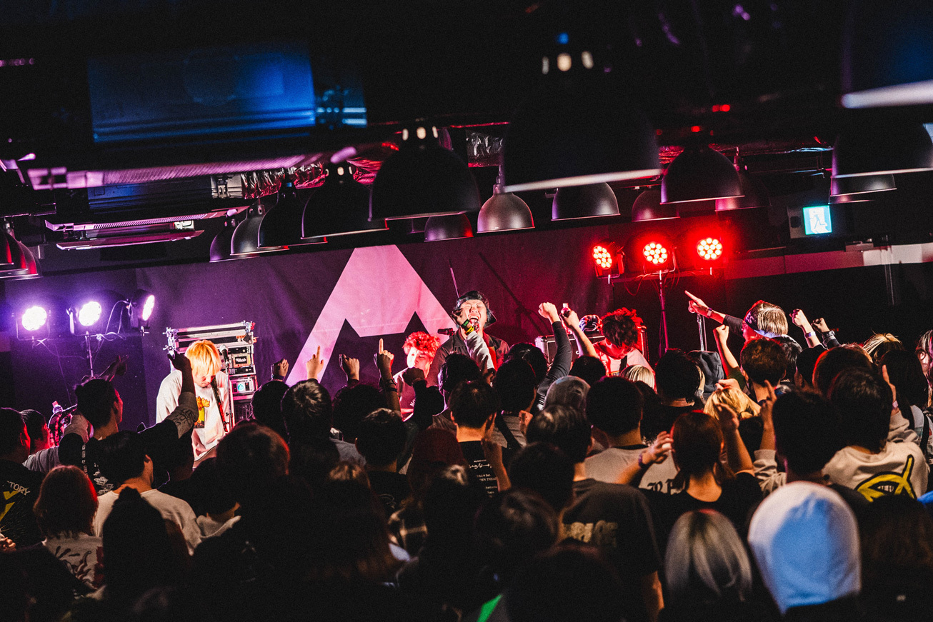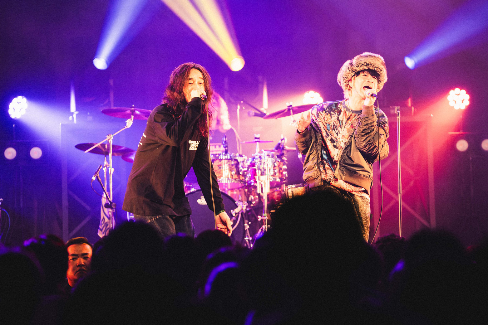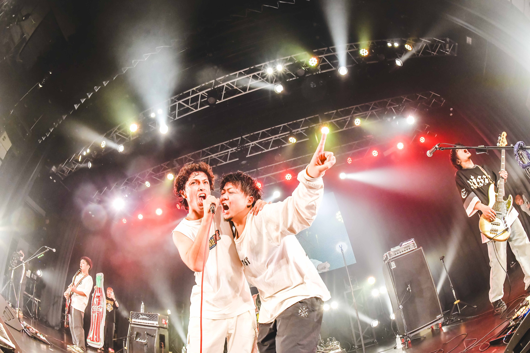 「WHATEVER」では、ナオキ(Gt.Cho)のポップなメロに誘われてか、あやぺたが客席からダイブ! 仲間がダイブする=めちゃ最高のライブの証拠で、「全部忘れちまえよ!」の言葉でタクミ(Dr.Cho)のビートがさらにタフになり、途切れることなくダイバーが続出。メンバーもそのままフロアへダイブを決め込みそうなハイテンションなライブを展開し、セキュリティスタッフ泣かせな時間が続いていく。MCでは今年一年は楽曲制作に費やした期間だったと語り、「マジで最強のものできたんで」と期待の募る発言も! 後半はタナカユーキ(SPARK!!SOUND!!SHOW!!)も加わり、「MAXX THE CAT a.k.a. lil white tiger feat.タナカユーキ」を豪快にキメると、「Will」まで全11曲を駆け抜けた。