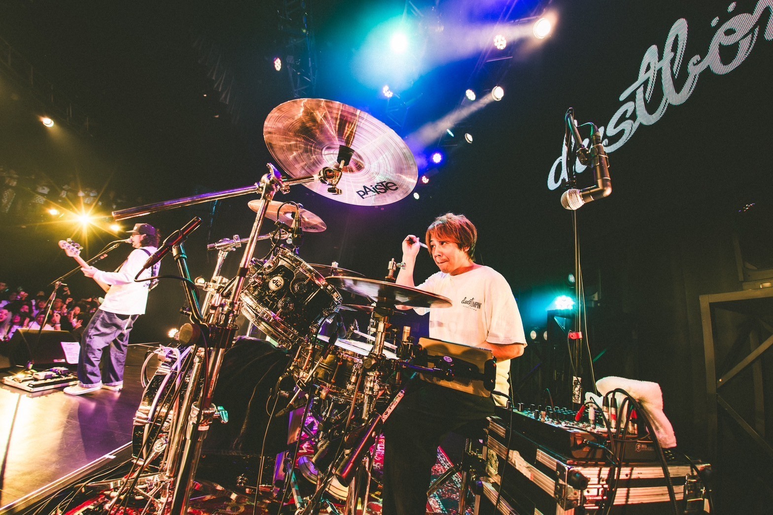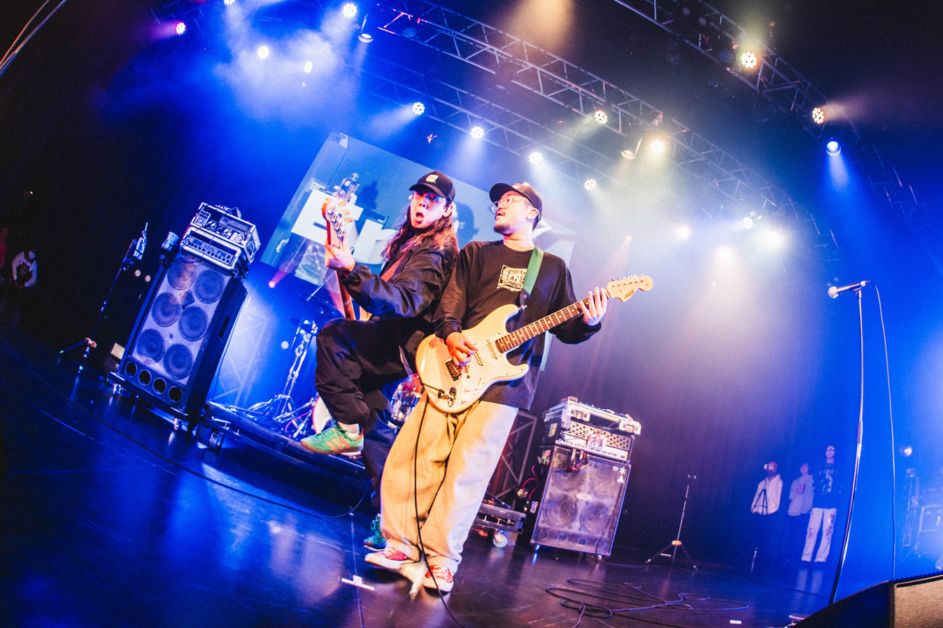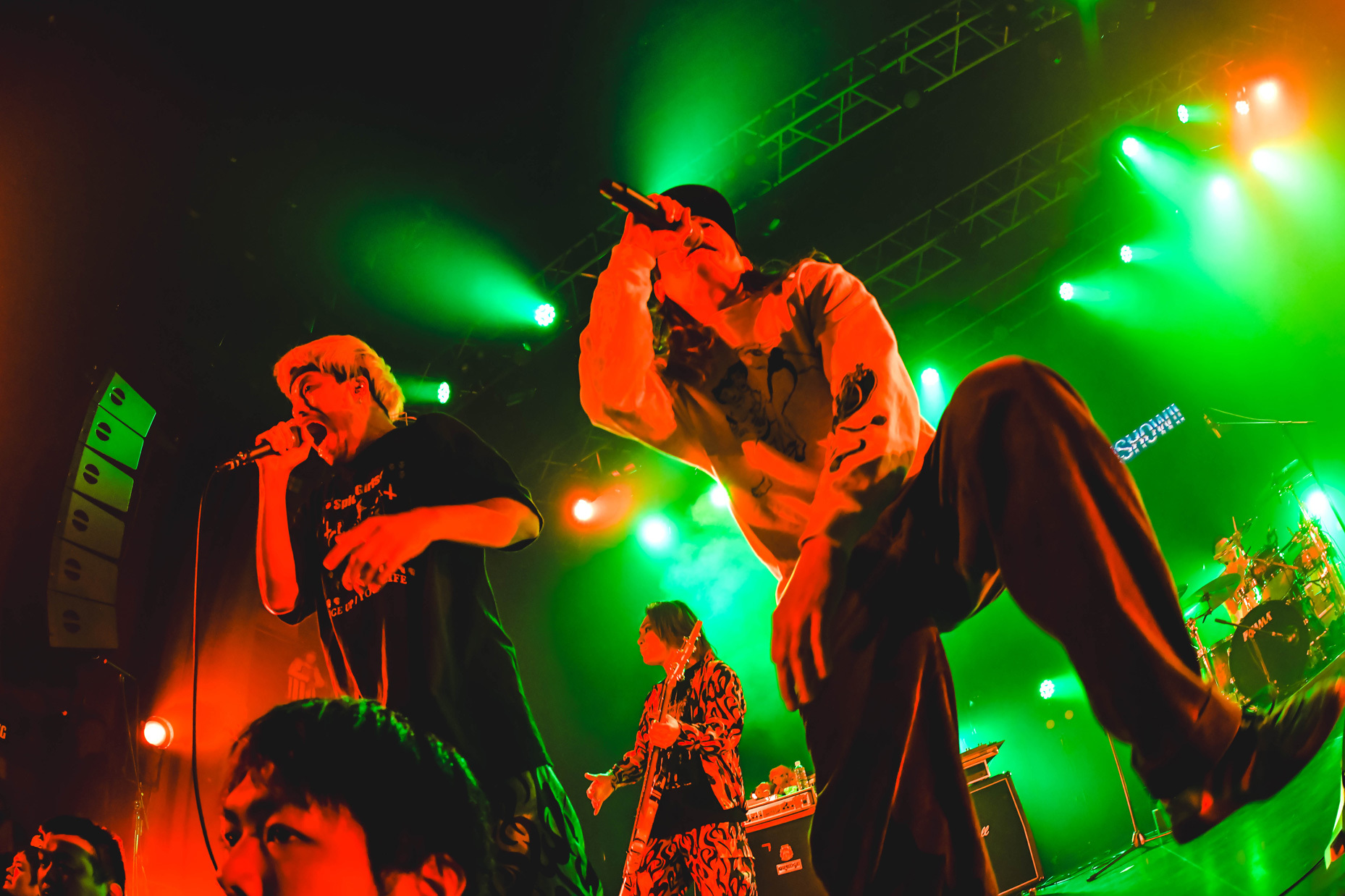 「WHATEVER」では、ナオキ(Gt.Cho)のポップなメロに誘われてか、あやぺたが客席からダイブ! 仲間がダイブする=めちゃ最高のライブの証拠で、「全部忘れちまえよ!」の言葉でタクミ(Dr.Cho)のビートがさらにタフになり、途切れることなくダイバーが続出。メンバーもそのままフロアへダイブを決め込みそうなハイテンションなライブを展開し、セキュリティスタッフ泣かせな時間が続いていく。MCでは今年一年は楽曲制作に費やした期間だったと語り、「マジで最強のものできたんで」と期待の募る発言も! 後半はタナカユーキ(SPARK!!SOUND!!SHOW!!)も加わり、「MAXX THE CAT a.k.a. lil white tiger feat.タナカユーキ」を豪快にキメると、「Will」まで全11曲を駆け抜けた。