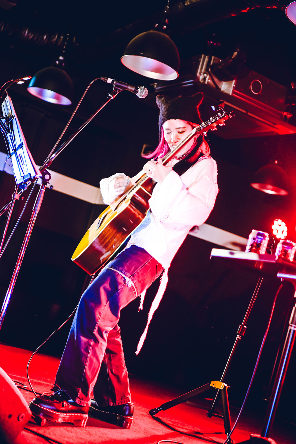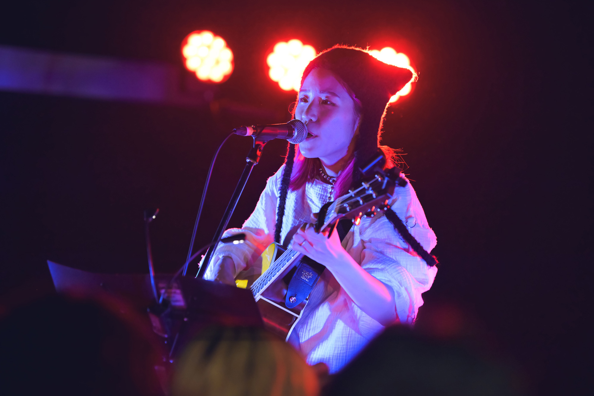 「東北ライブハウス大作戦」のプロジェクトに参加し、たくさんのバンドマンとの絆を繋げてきた彼女。先輩たちが嘘なく、心向くままに走る姿に心救われたと語り、「ロックバンドがやってきた」「満月の夕」を披露。シンプルな言葉で綴られる楽曲に、観客は”当たり前”を大切に想い噛みしめるように聴き入っている。「私なりに暴れられるように。2024年も歌っていく。何より、みんなの平和を願います」とラスト「予兆」まで、真摯な歌声で魅せてくれた。