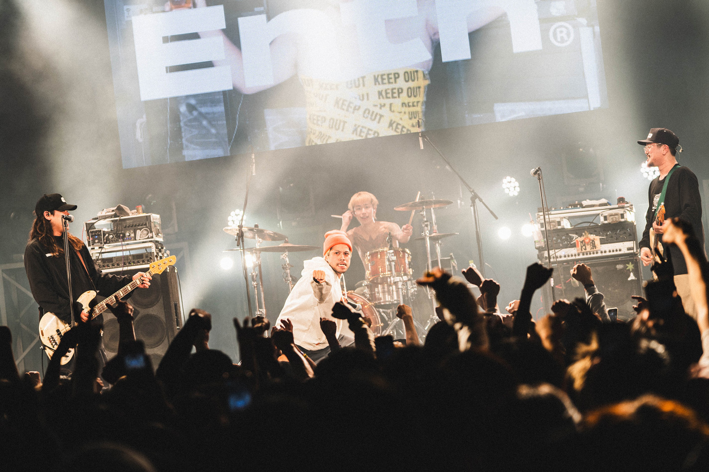 年越し側(そば)STAGEのトップバッターは、名古屋出身で24歳のシンガーソングライター・AIK(アイコ)。ENTHのTシャツを着てエレキギターをかき鳴らし、ひとり懸命に声を張り上げる。腹の底から湧き出た感情をそのままぶつけるような歌声からは、荒々しさと粗さが感じ取れる。2曲を終えてMCでは「こんなクソガキを混ぜてくれて本当に嬉しいです。私の音楽を、人生を、生きる意味を与えてくれたバンドが今日出てます」と、憧れのバンドであるENTHと同じイベントに出演できた喜びを、泣きそうな顔で伝える。