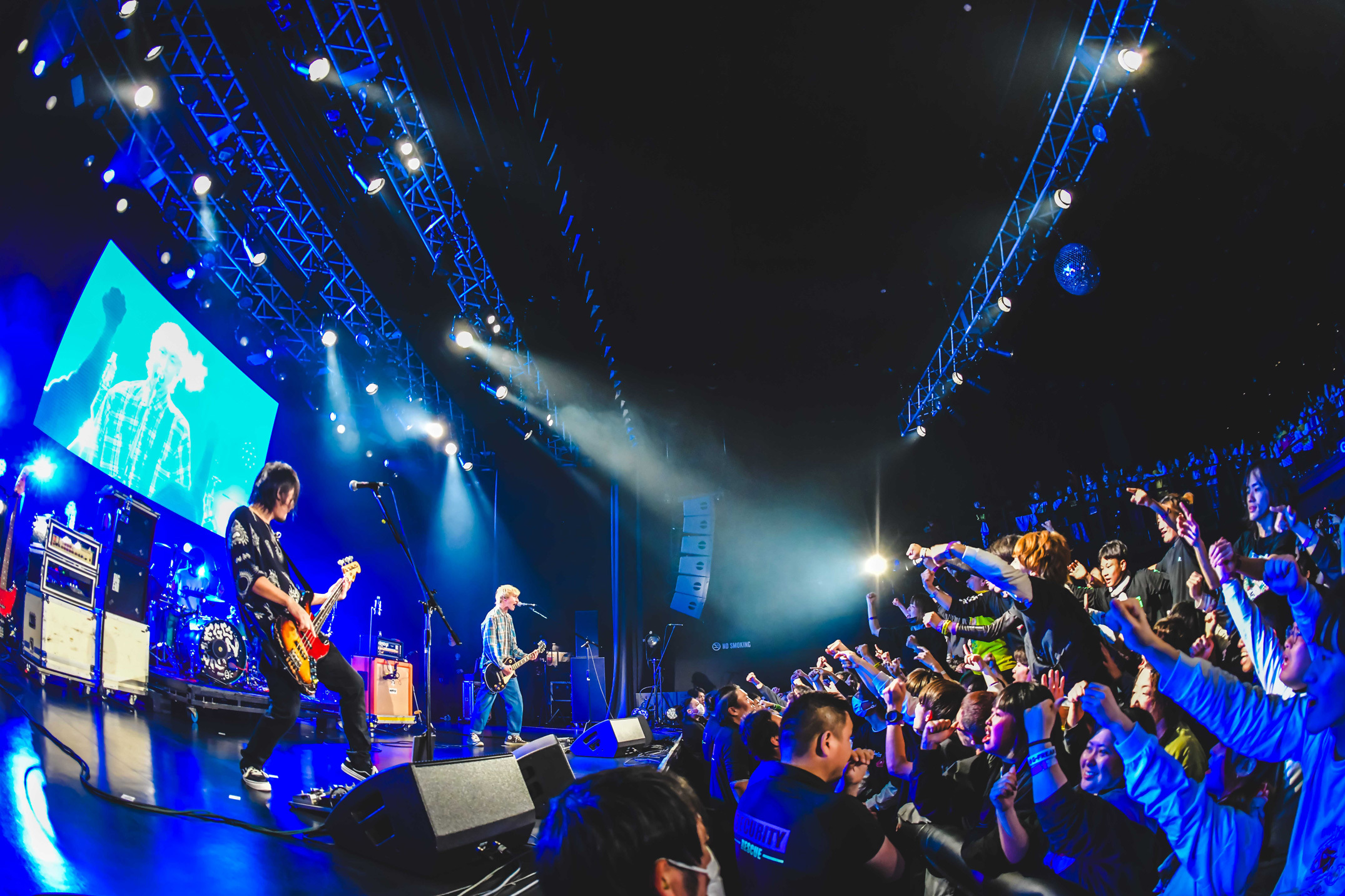 「2023年、世話になったな!」、茂木洋晃(Vo)が感謝の言葉を豪快に投げかけると「Too oLD To KNow」から心地よい裏打ちのリズムがフロアを揺らす。いつだって盛大なシンガロングが沸き起こる名曲からのスタートとくれば、観客のテンションは言わずもがな。次曲「Unscramble」では、原田季征(Gt)のギターリフで再び歓声が沸く。