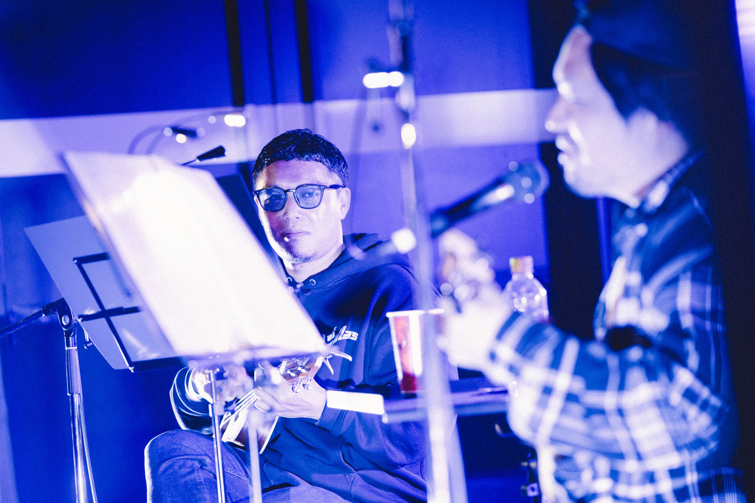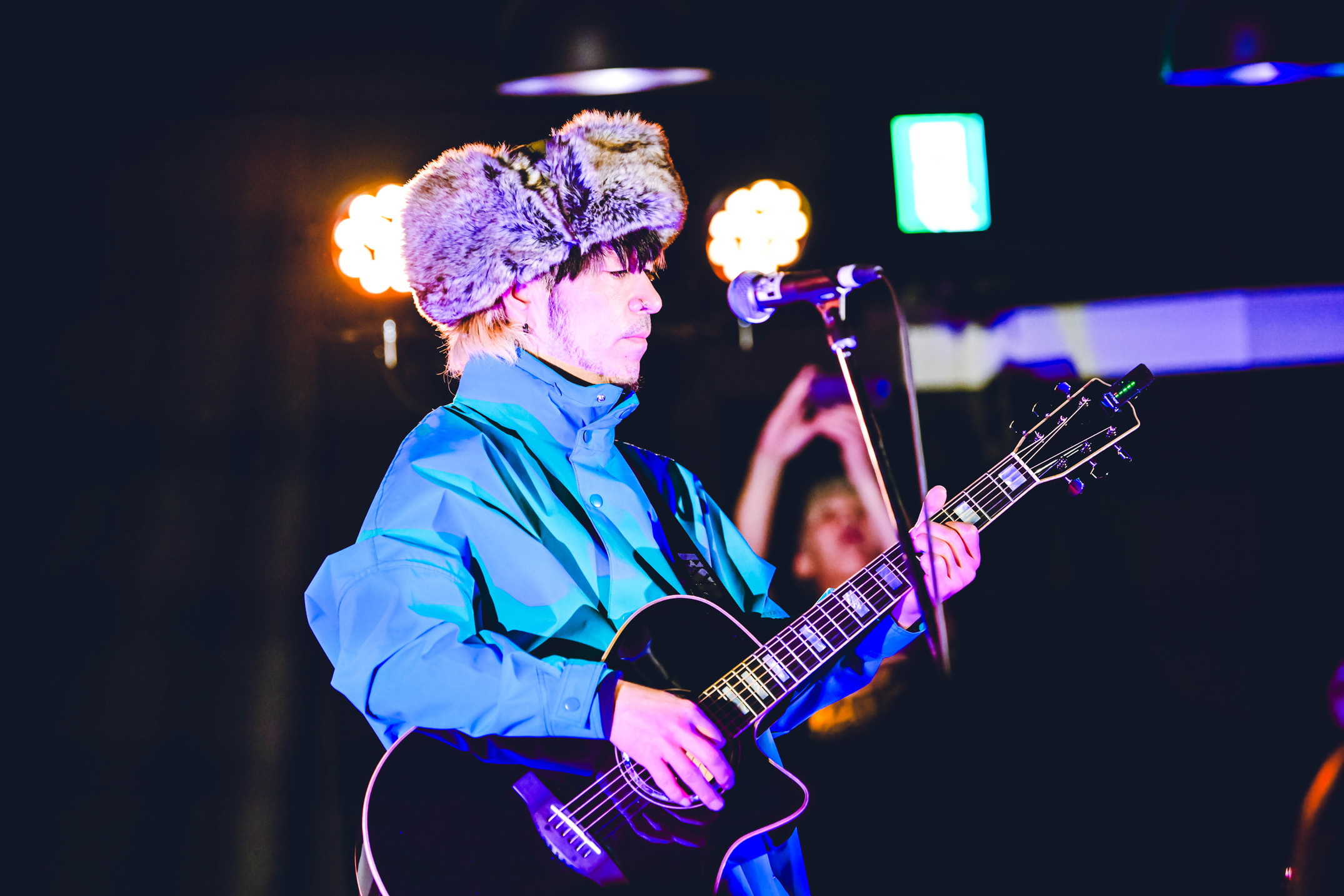 「Andy」や「そばにいてよ」など、自身のバンドの楽曲で進行するかと思いきや、dustboxや矢井田瞳をカバーしたりと自由気まま。トークもフリースタイルというか、宴会そのもの! 「こういう忘年会したかった!」と大喜びで、観客と乾杯するわ、喋りすぎて次の曲を催促されるわと、バンドでステージに立つ姿とはまた違う、音楽を自由に楽しむ姿に思わずほっこり。