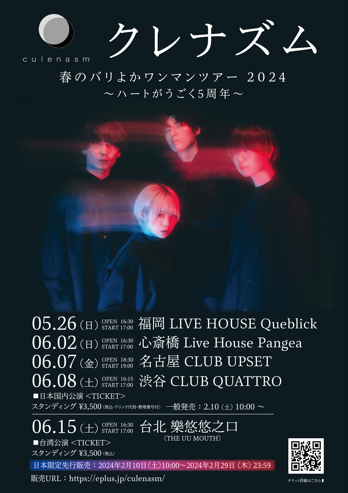 クレナズムが、結成5周年ツアー『クレナズム 春のバリよかワンマンツアー2024〜ハートがうごく5周年〜』の台湾公演チケットの詳細を発表した。