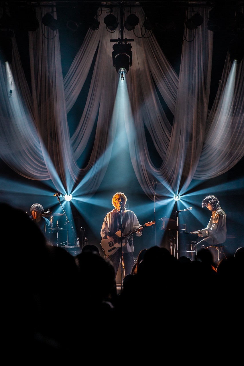 アンコールは、3人だけの剥き身の音像で鳴らす「reborn」から。時に顔を見合わせながら、じゃれ合うように音を合わせる3人の様子が微笑ましい。山口は直後のMCで「(メンバーに)駆け寄りたくなる時、あるじゃん?」と笑っていた。そしてMCでは、東名阪でのツーマン企画『ふたりのり』の開催が決定したと発表。ライブ中の「曲も作ってるし、ツアーもまた回る」という発言を見事回収し、ファンを喜ばせると、ラストには、リリース未定、ライブでも初めて演奏する新曲「ただの友達になる前に」を披露した。「3度目のデートで何も起こらなかった2人はただの友達になる」というジンクスをテーマにした恋愛ソングで、ポップな曲調に誘われて、観客は手拍子したりリズムに合わせて手を左右に振ったりしている。全員初聴きとは思えない盛り上がりよう。歌いながら客席に下りていった山口が通路沿いの観客とハイタッチしていったシーンも含めて、最高にハッピーなエンディングだった。