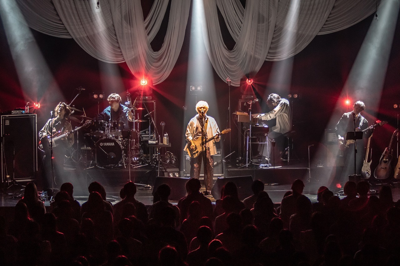 最初のMCで、2024年初の東京でのライブ、かつ初めての会場ということで、少し緊張していると明かしていたメンバー。そんななか、喋る内容を一瞬忘れかけた山口に対して、客席から「ファイト!」という声が。「いいですね。そういう声ほしいなって思ってる」と山口が言うと、そこから客席とのコミュニケーションが始まり、メンバーと観客の緊張がいい具合に解れていった。ある観客が「89(歳)になる!」と叫んだあと、萩原が「あちらが僕のおじいちゃんです」と付け加え、驚きとともに和やかな空気に包まれる場面も。