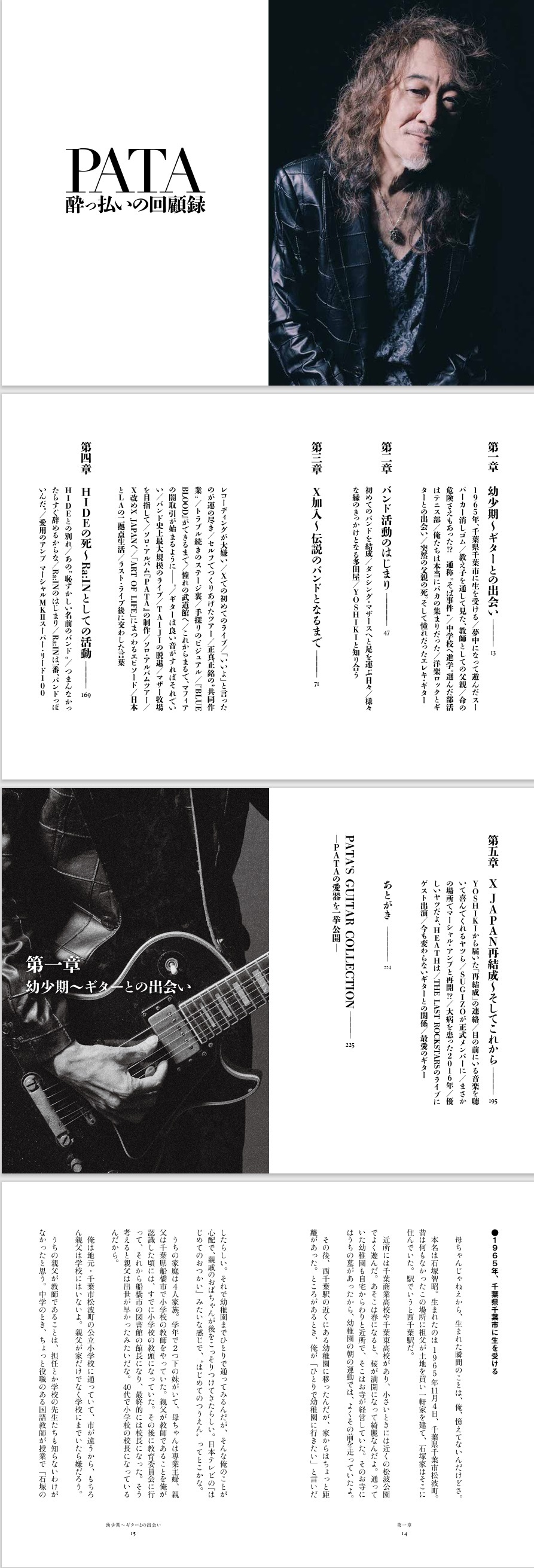 X JAPANのギタリストとして名を馳せるPATAが現在までの半生を振り返る自伝で、音楽やギターと出会った幼少期、Xとの出会いやインディーズ時代、HIDEとの出来事、そしてX JAPANのメンバーとして世界中を飛び回る怒涛の活動の全て、様々な裏話なども綴られている。