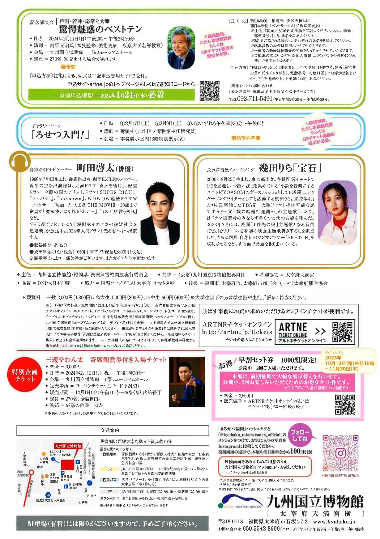 先の大阪会場から引き続き、音声ガイドのナビゲーターは、劇団EXILEのメンバーで大河ドラマ『青天を衝け』や『30歳まで童貞だと魔法使いになれるらしい』シリーズなどへの出演で知られる俳優の町田啓太が務め、同展イメージソングは幾田りらの「宝石」が使用される。