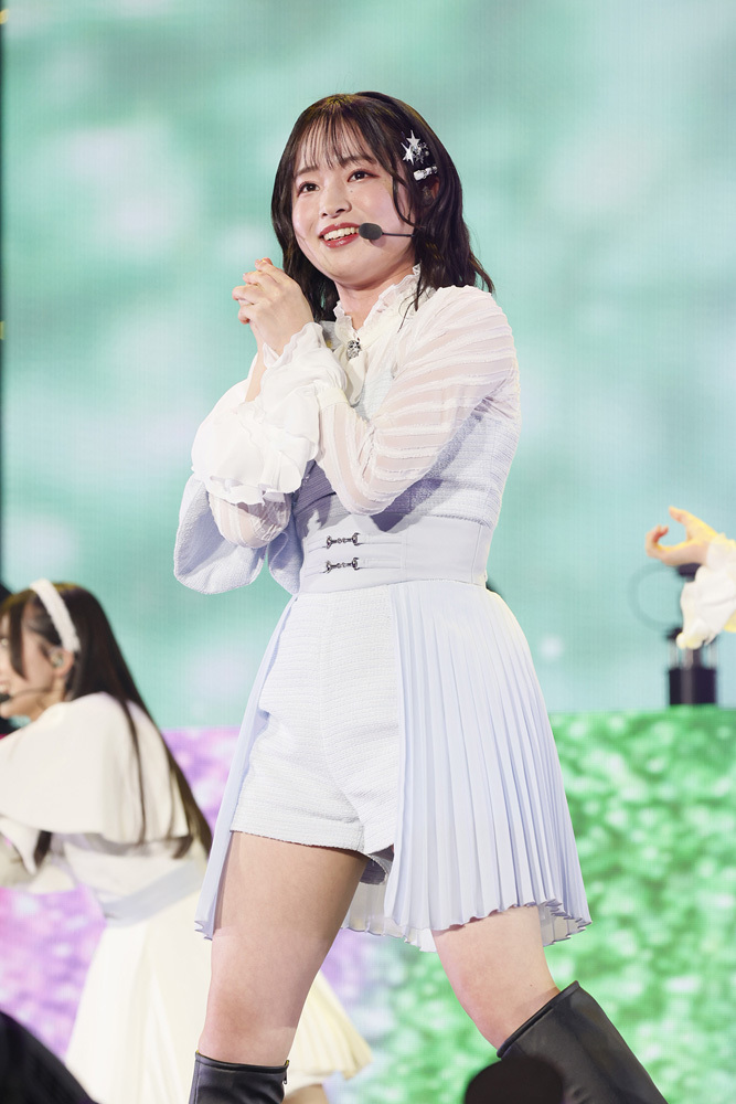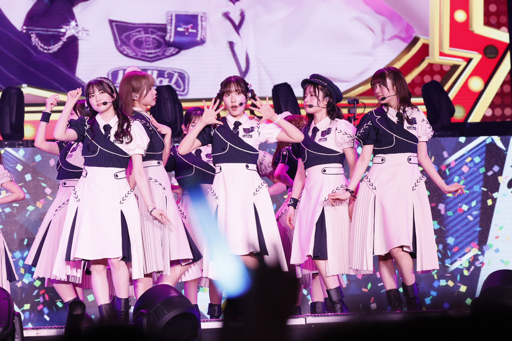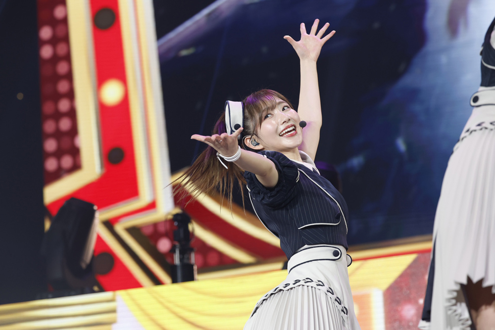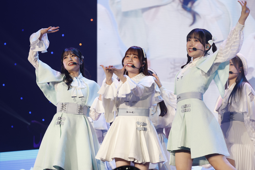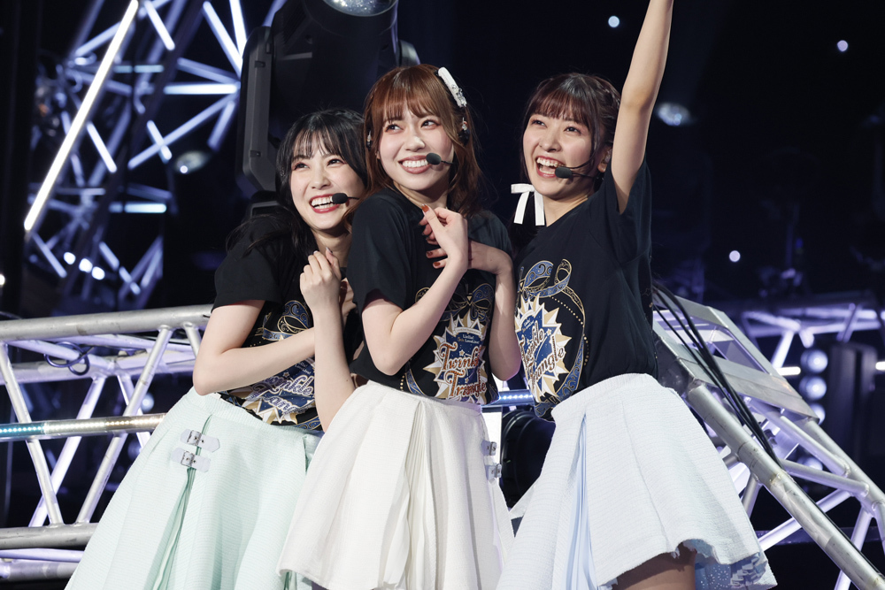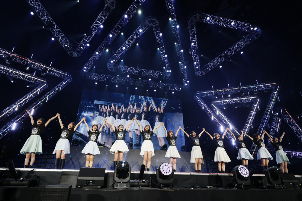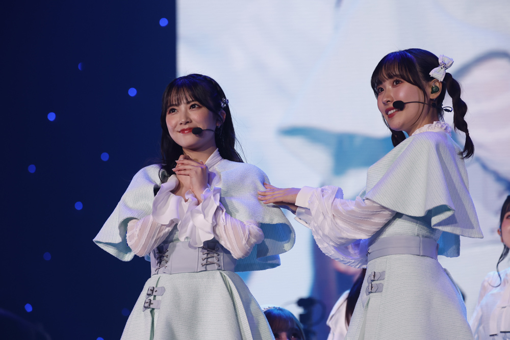 ファンの盛り上がりに喜びの声で応えながら始まった二度目のMCでは、1期生・2期生・3期生の繋がりを織り込んだパフォーマンスを振り返ったり、2期生だけで自分達のステージ直前に円陣を組んで臨んだなどの裏話が明かされる。そして1期生のナンバーを後輩組が唄えたことの喜びなども語りながら、ライブもクライマックスに。
