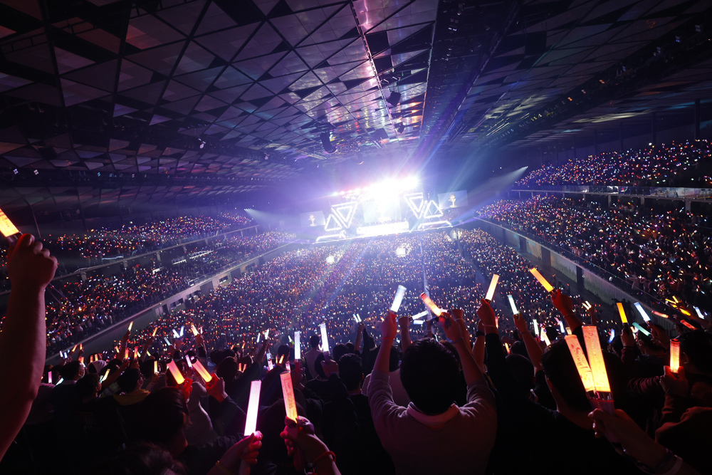 昨年1月・9月にもライブが行われ、Liella!ファンにはおなじみの会場となった武蔵野の森総合スポーツプラザ・メインアリーナは、冬の寒さを吹き飛ばすような満場のLiella!ファンの熱気が充満。推しのイメージカラーのライトを輝かせながら、開演間近に「私のSymphony」や「UNIVERSE!!」といった人気ナンバーが流れると、クラップやコールを合わせて盛り上がり、ウォーミングアップもばっちりな状態でいよいよライブが開幕。