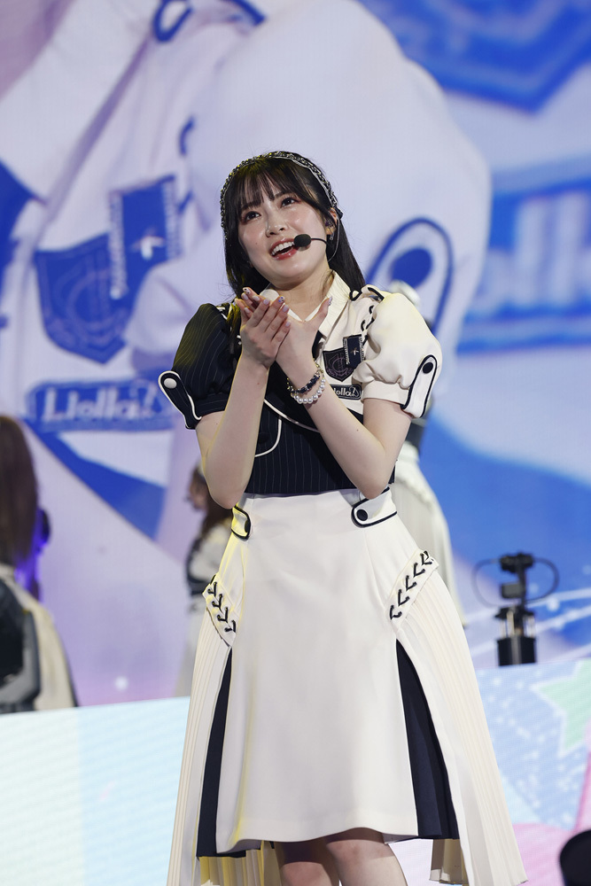 「みなさんの想いを届けます」とステージを引き継いだ3期生が唄うのは、1期生の初期ナンバー「1.2.3!」。新たな夢へと思い切って飛び込む思いを唄ったこの曲で、自分達もLiella!という夢に飛び込みたいという気持ちを熱唱。ファンと共に「1.2.3!」のかけ声を重ねて盛り上がり、ステージへ戻ってのクライマックスでは、2人の気持ちに応えるように客席が2人のイメージカラーの輝きでキレイに二等分に。彼女達をLiella!に導く光の道を作るというファンからの粋なプレゼントとなった。