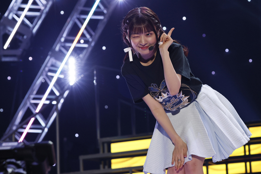 そんな先輩達に応える様に「もっと盛り上がれ」という掛け声と共にトロッコに乗り込んで桜小路きな子/米女メイ(薮島朱音)/若菜四季/鬼塚夏美(絵森 彩)ら2期生4人が登場。悩みを振り切って新たな世界に踏み出す気持ちを唄った1期生のナンバー「バイバイしちゃえば!?」と2期生のみのオリジナルナンバー「Blooming Dance!Dance!」を見事なダンスと共に披露。先輩達への思いをパフォーマンスに込めて、そして今度は自分達の後輩である3期生の2人、ウィーン・マルガレーテと鬼塚冬毬に手を差し伸べて、新たなステージへと導いてみせる。