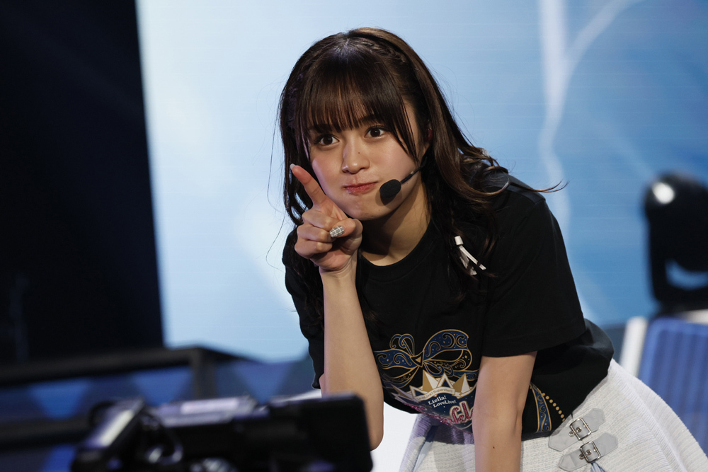 最初のMCタイムではメンバーの個性を交えたコール&レスポンスでは、鬼塚冬毬役・坂倉花の「エビデンス」という言葉に他のキャストやファンが身体をクネクネさせる「エビダンス」で応えたり、今回のライブ衣装紹介では大熊和奏(若菜四季役)と結那(ウィーン・マルガレーテ役)が衣装で遊び、笑いを誘う一幕も。そして葉月恋役・青山なぎさのおしとやかな掛け声と共に、再びライブがスタート。