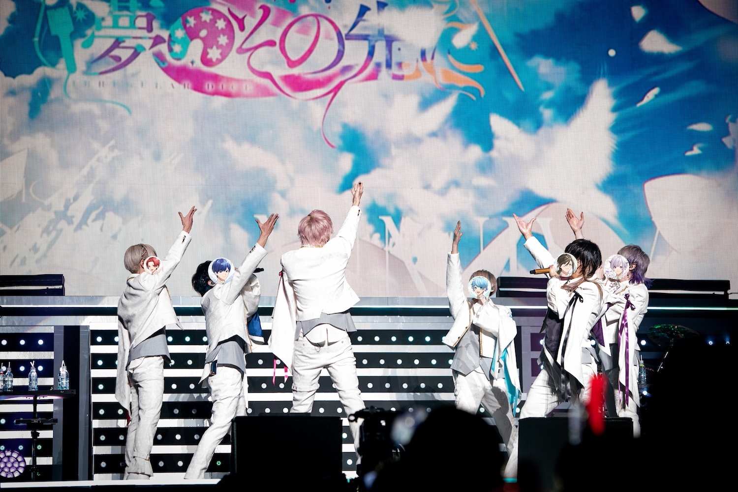 「Stage!」「Seventh」をつなげたメドレーからは、武道館ライブのキービジュアルそのまま、ノーブルな金模様をあしらった黒衣装にお召し替え。結成1周年ソング「Celebration」、結成2周年ソング「君のために生まれてきた」、そして日本武道館ライブリード曲「星降るフェアリーテイル」。マントの裾を翻しながら華麗に舞い歌い眩いほどの輝きを放つ6人と、愛を込めてペンライトを振るたくさんのリスナー。お互いに求め合い形作る星座は、息を呑むほどに美しくて誇らしげだった。