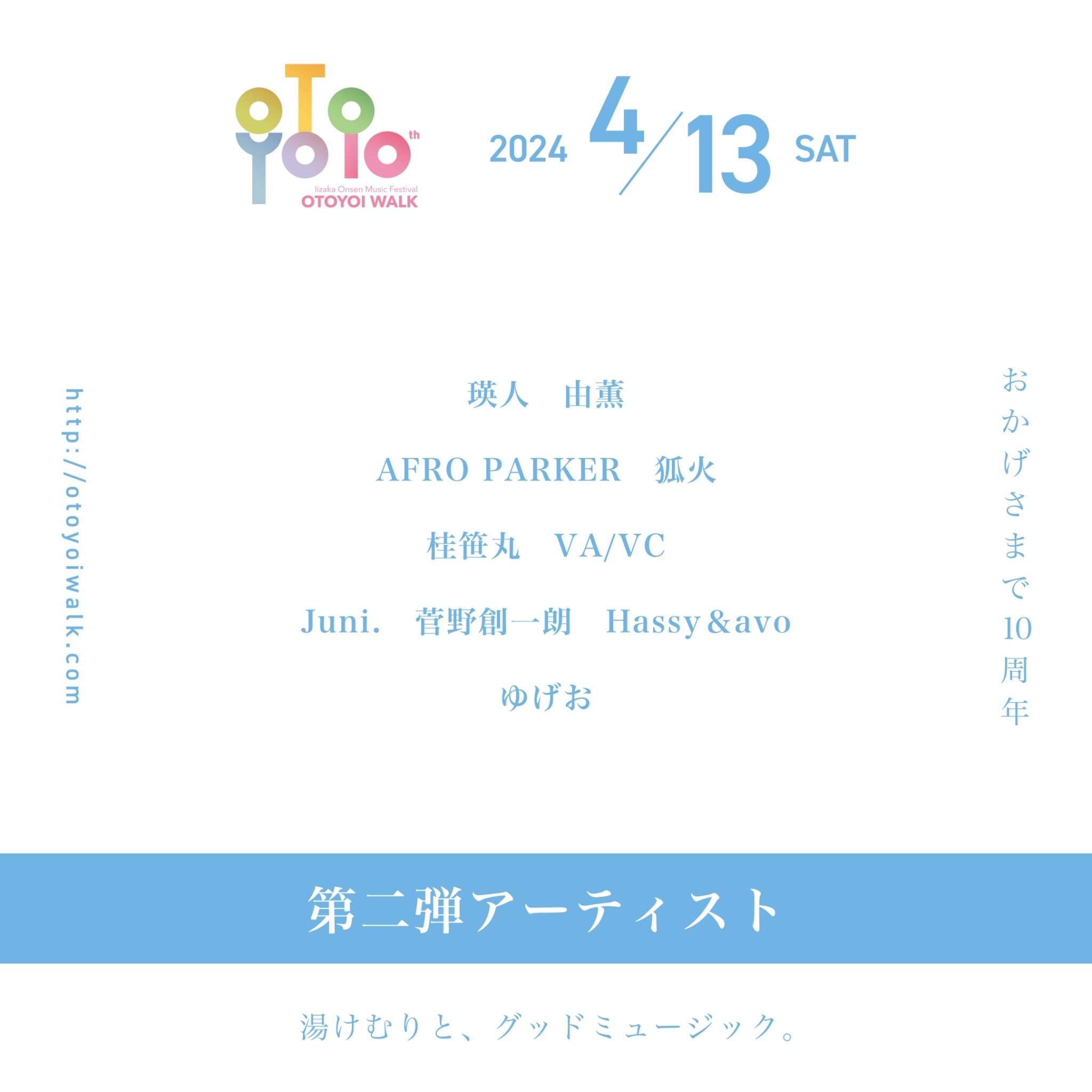4月13日(土)に福島県福島市飯坂町の飯坂温泉街6会場で開催される『おと酔いウォーク2024』から、第二弾出演アーティスト情報が解禁された。