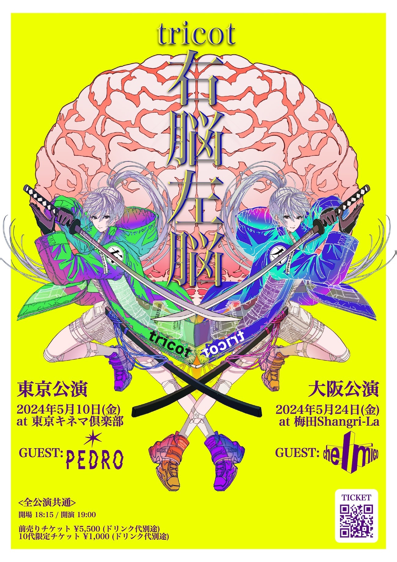 5月に東阪で開催されるtricot主催のツーマン企画『右脳左脳』各公演のゲスト出演者が発表された。