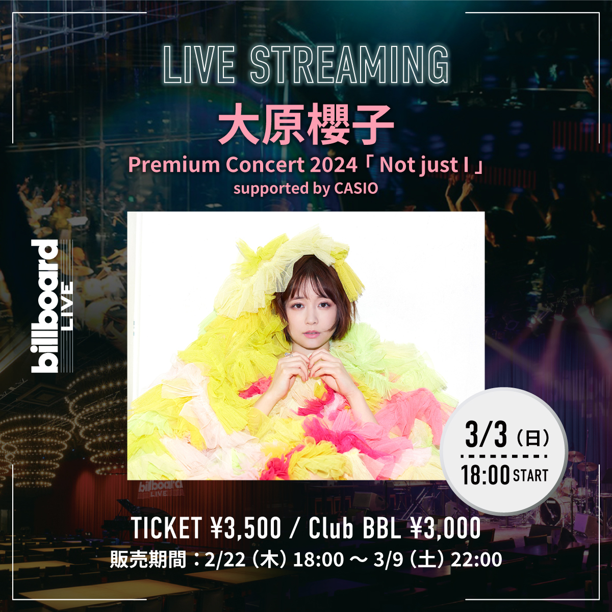 3月3日にビルボードライブ東京で開催される『大原櫻子 Premium Concert 2024「 Not just I 」』公演の2ndステージの生配信が決定した。