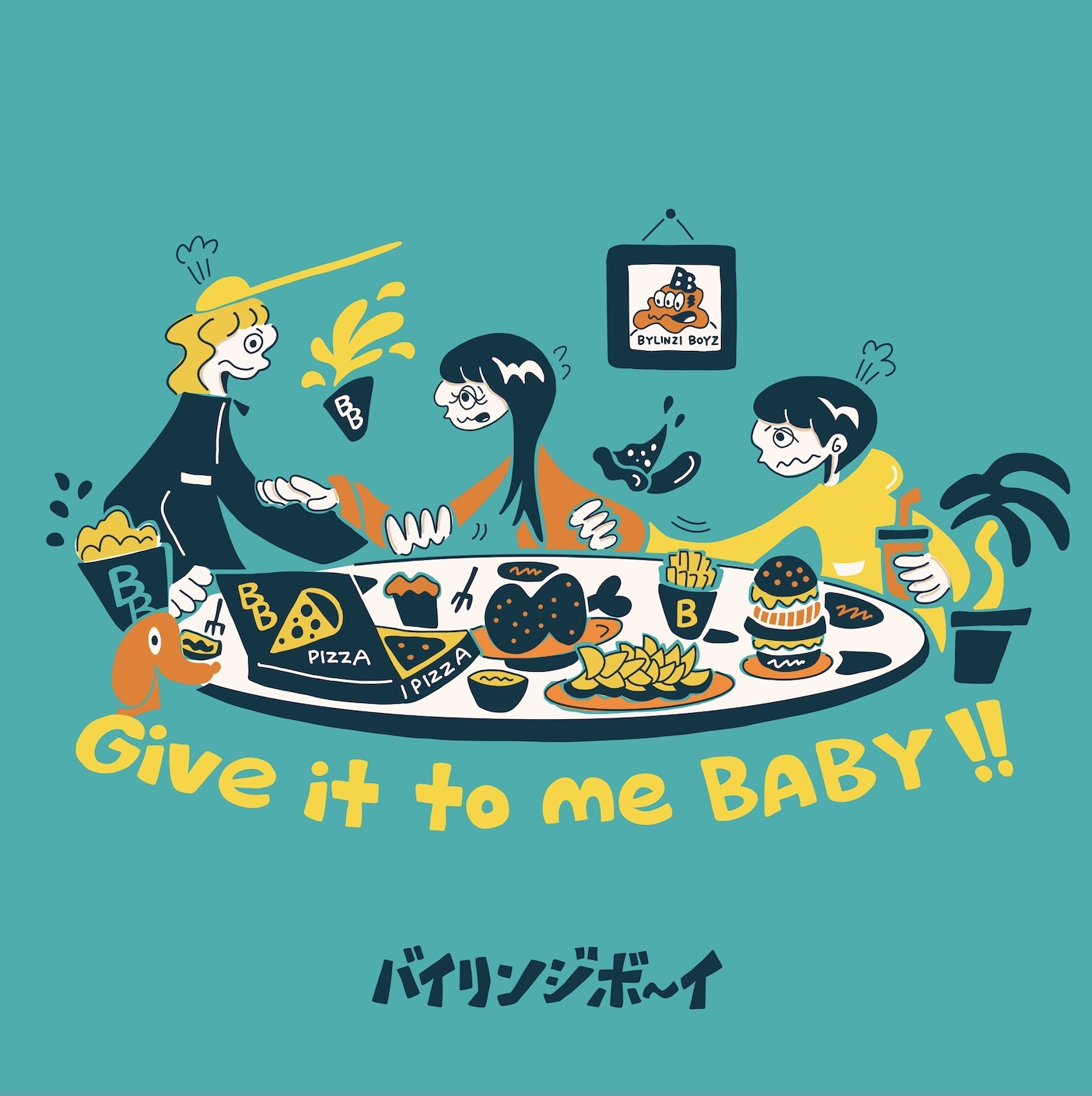 「Give it to me BABY!!」は、これまでのバイリンジボーイにはない新たなアレンジにトライした楽曲に、ボーカル&ギターの梅林寺連太郎が描く、情けなくも爽快な三角関係の歌詞が踊るポップパンクチューンとなっている。