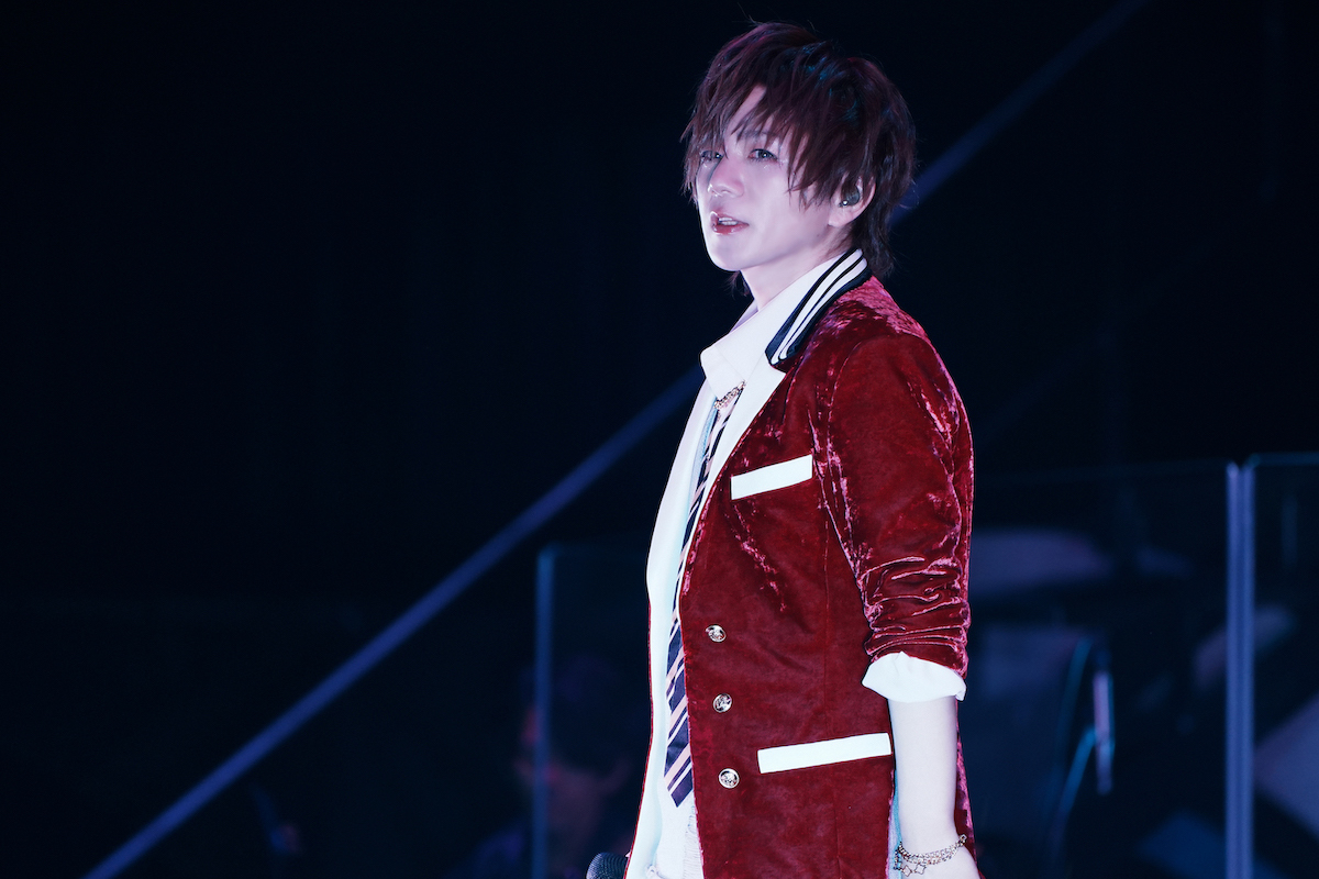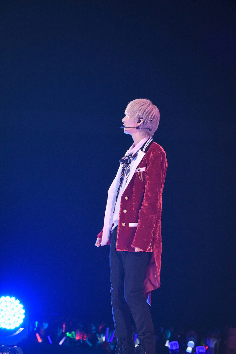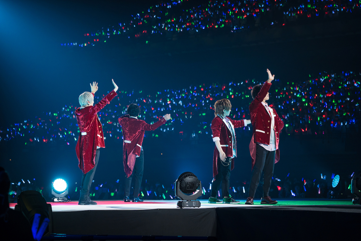 「さあ、僕(俺)を選んでよ(選びなよ)」とそれぞれが自分をアピールする乙女ゲーム風なオープニングムービーがあけ、ファイヤーボールが勢いよく噴き上がるステージに姿を現したそらる、まふまふ、うらたぬき、あほの坂田。。ライブのメインビジュアルそのまま、赤の燕尾服風衣装をまとった華やかな4人が歌声をつなぎ、重ねた1曲目は「能力引継ぎで乙女ゲーの世界に転生した件についてwww」だ。全員が眩いほど輝く<王子様>なわけで、誰かひとりを選ぶのは非常に難しい。