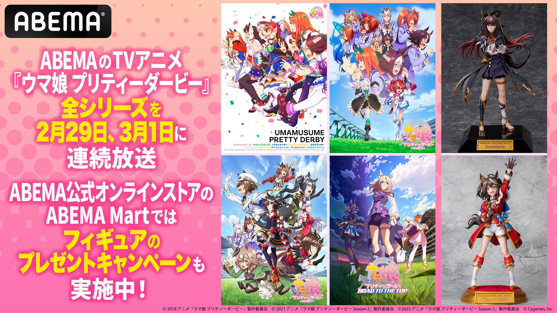 「ABEMA」が2024年2月29日(木)、3月1日(金)に『ウマ娘 プリティーダービー』よりアニメシリーズ4作品を全話無料一挙放送することがわかった。