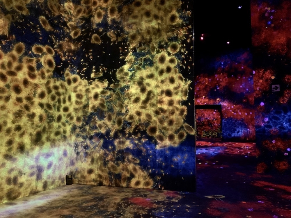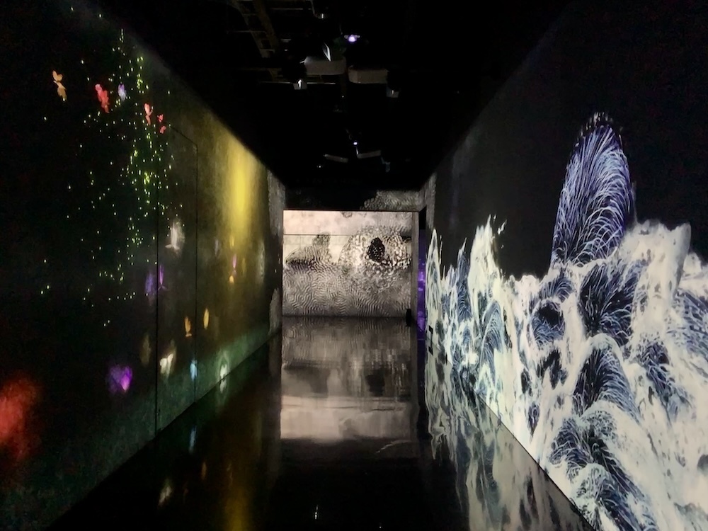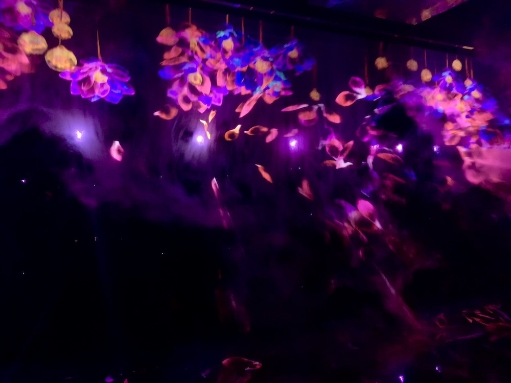 こちらは四季折々の花が空間いっぱいに咲き乱れる、夢のような小道。鑑賞者が立ち止まれば足元からまた花が咲く。そして咲いている花に触れると、花は花弁を散らして死んでいく。難しいことは抜きにして、スケールの大きさと艶やかさにため息が出てしまう。なるほど、日常モードからアートな思考に切り替えるためには、まずはこうして問答無用で“美”にビンタされるようなショックが必要かもしれない、なんて思う。