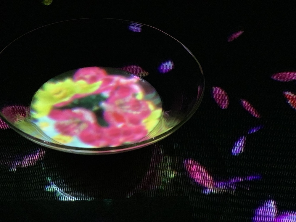 近くで見つめると、水彩で描かれた抽象画のようで見惚れてしまう。ここでは、花やゆらめく炎など、雰囲気の異なった複数の作品が入れ替わり立ち替わり登場する。文化祭のステージのように「今何やってるかな?」と覗いてみれば、見るたびに新しい驚きに出会えるだろう。