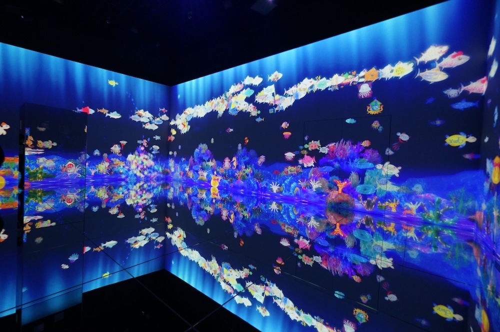 チームラボ《スケッチオーシャン》上方にマグロの群れが見える