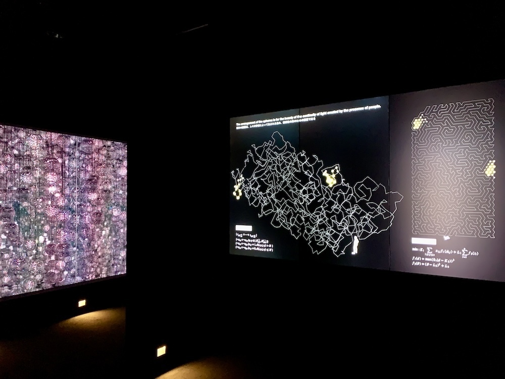 チームラボ《花と人、コントロールできないけれども共に生きる – A Whole Year per Hour》、《Walk, Walk, Walk: 探し、遠ざかり、また 出会う》、《Untitled》
