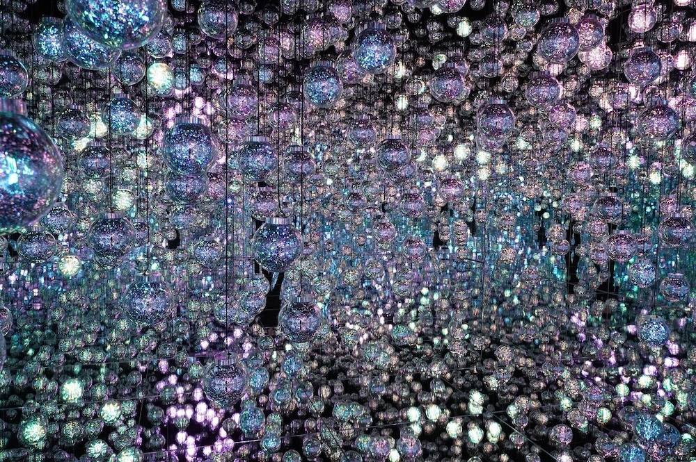 《Bubble Universe》は、今回のリニューアルオープンに際して発表された新作インスタレーションだ。珍しく添えられたキャプションパネルには、迷路のような道筋と、複雑な数式が記されている。本作は幻想的な写真が撮れる魅惑の撮影ポイントであると同時に、人間の「認識と存在について」の問い掛けが込められた思索的なアートなのである(難しいけれど)。