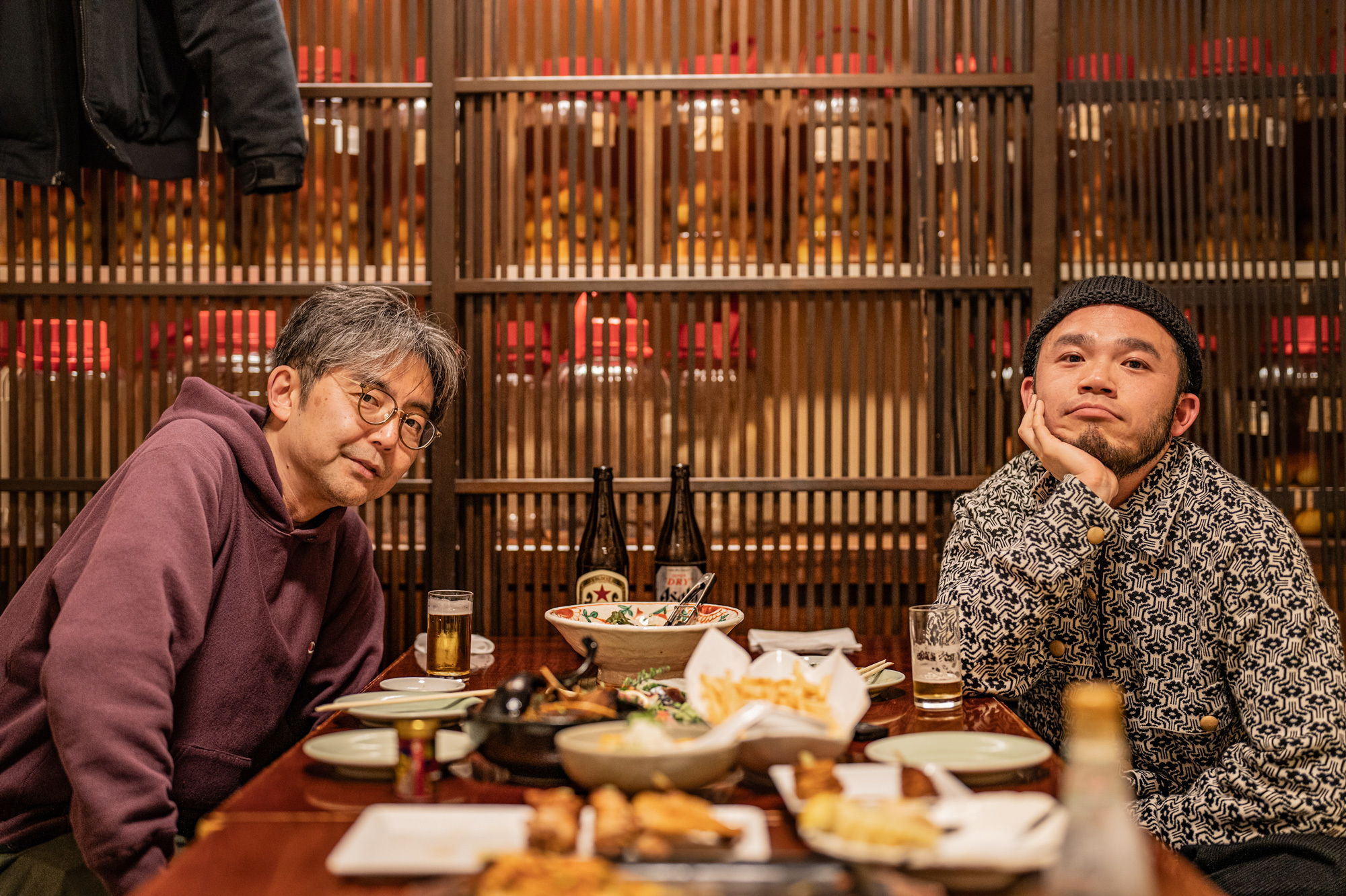 MOROHAアフロの『逢いたい、相対。』第四十二回目のゲストは向井秀徳。今回の対談はミュージシャンの聖地であり、ノスタルジーな雰囲気が漂う東京・下北沢で行われた。両者が初めて対バンをしたのは、2012年の渋谷O-nestで開催された『宇宙旅行R』だった。さらに遡れば、アフロは10代の頃から向井の音楽に魅了されていて、1stアルバム『MOROHA』の収録曲「奮い立つCDショップにて」でZAZEN BOYSの名前が出てくることからも、いかに特別な存在であるかが窺い知れる。一方、2021年にMOROHAがTHE FIRST TAKEで「革命」を一発撮りで披露した動画が上がった際、向井はX(Twitter)で「これを俺はブルースという」とポストしている。音楽シーンで圧倒的な存在感を放ちつづける異端な2人は、一体どんな会話を繰り広げるのだろうか。