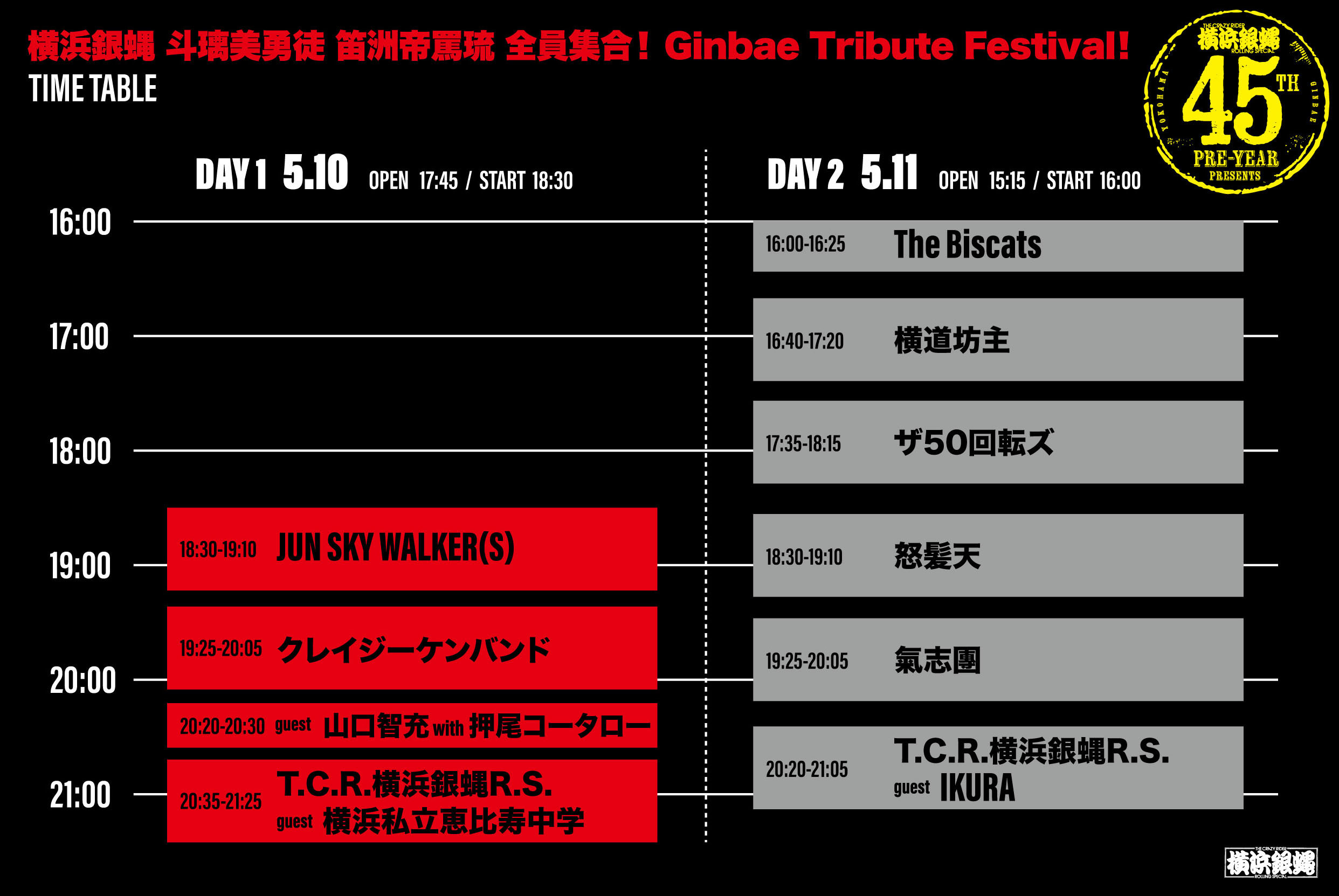 『横浜銀蝿 斗璃美勇徒 笛洲帝罵琉 全員集合! Ginbae Tribute Festival!』タイムテーブル