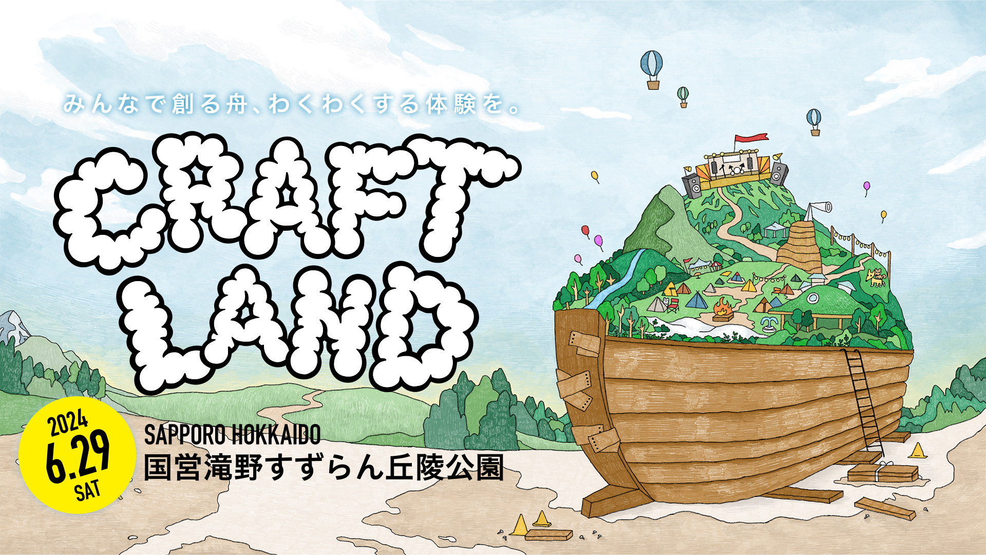 『CRAFTLAND』(クラフトランド)は、「みんなで創る舟(CRAFT)」をコンセプトに、イベント・会場自体を大きな舟に見立てたというイベント。音楽、飲食、キャンプや、工作、創作の楽しさを提供するワークショップのほか、ライブ出演アーティストが単体で出演。コラボレーションやゲストなど、その日だけの演出も予定されている。