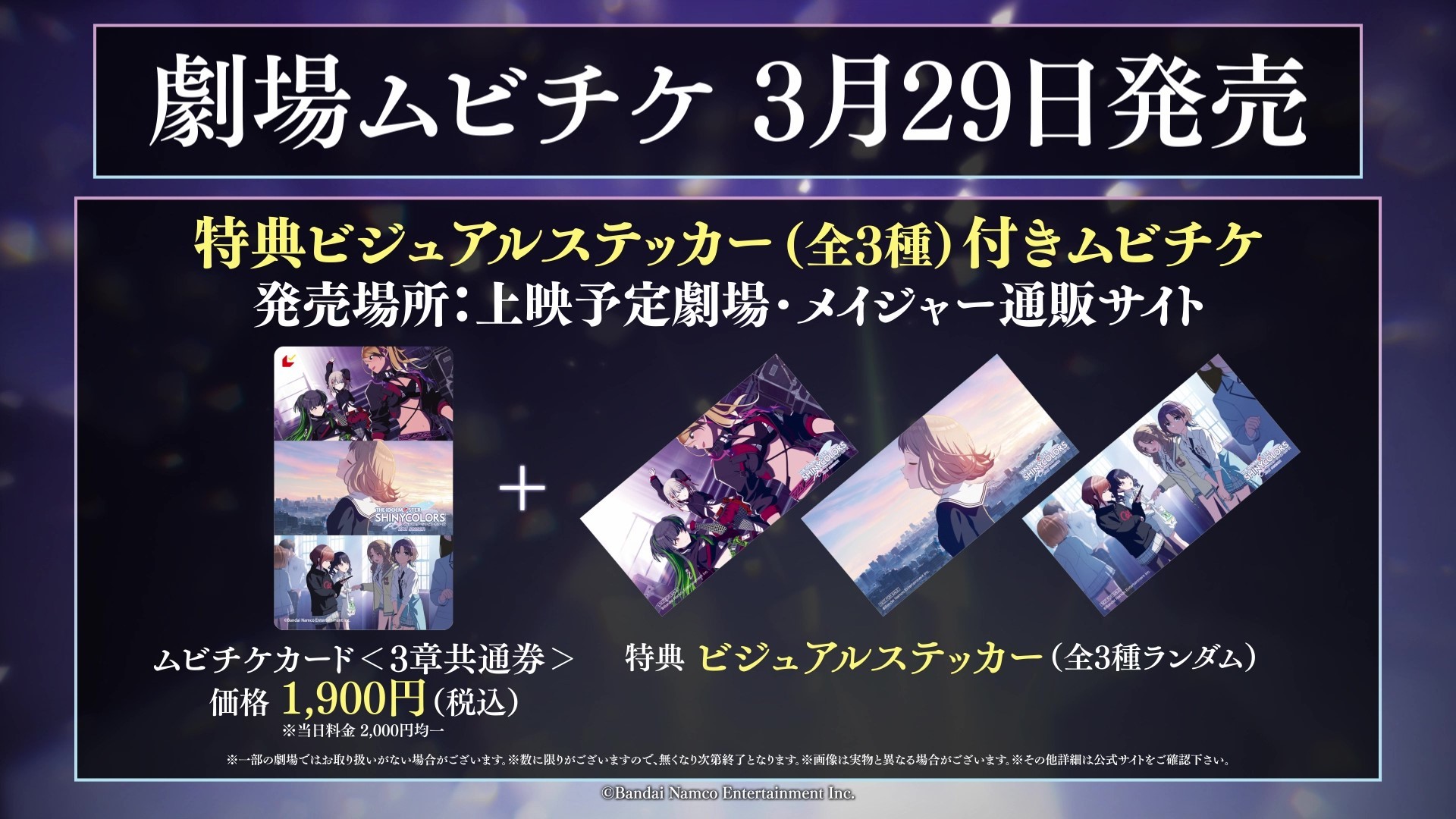 上映予定劇場・メイジャー通販サイトでは、3月29日(金)より特典「ビジュアルステッカー(全3種)」付き劇場ムビチケが発売される。